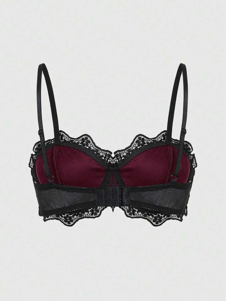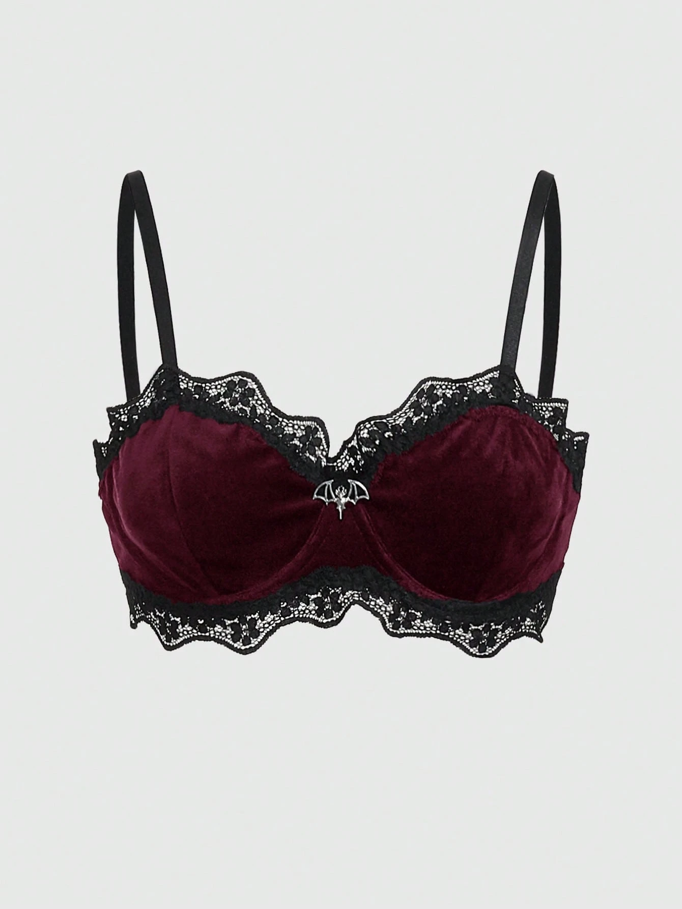Grunge Punk Women's Steel Hoop Velvet & Lace Bat Pendant Bralette