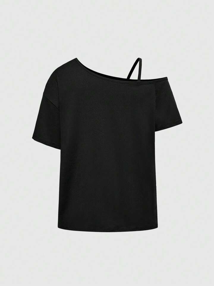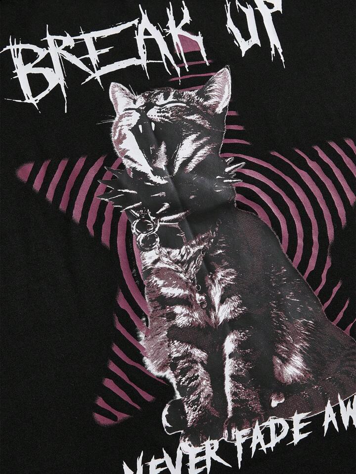 Grunge Punk Women's Vintage Cat Print Lace Patchwork Asymmetrical Neck T-Shirt