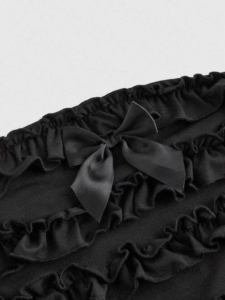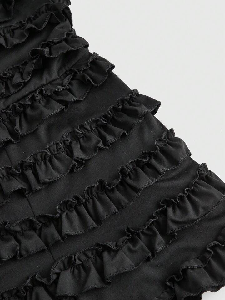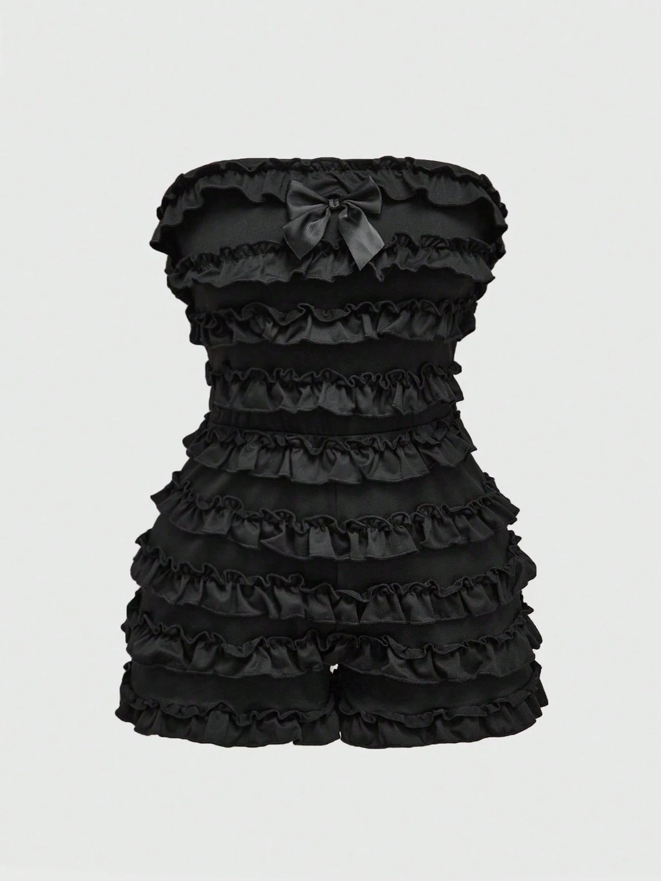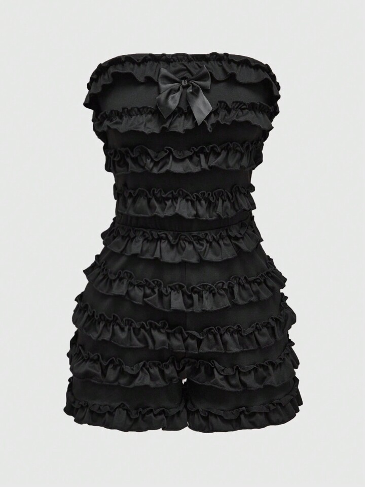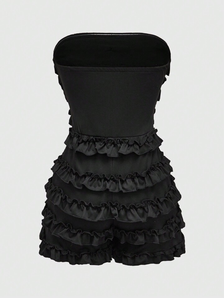 Grunge Punk Women's Y2K Harajuku Style Solid Black Ruffle Layered Cake Mini Romper Women Rompers