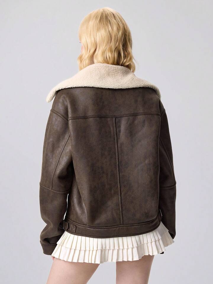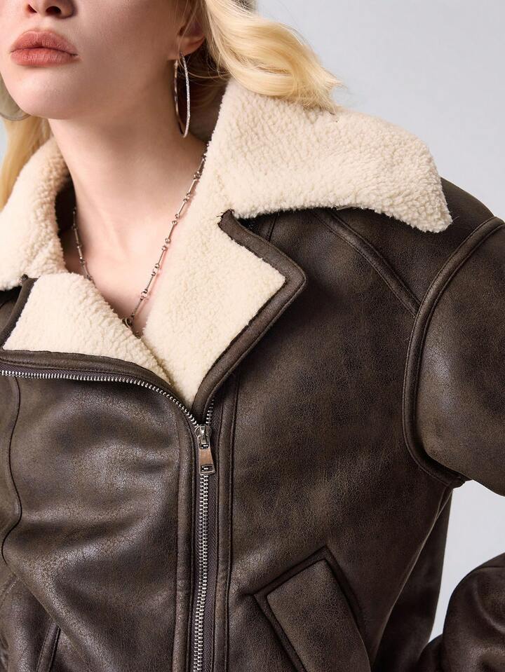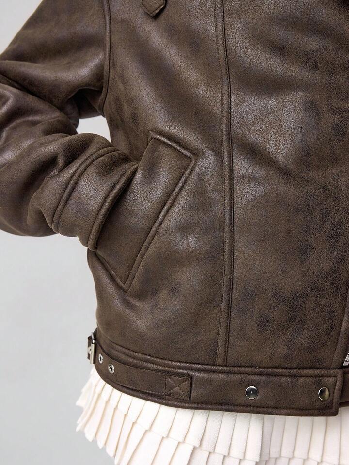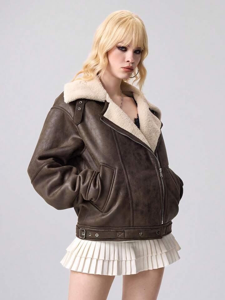Grunge Punk Women's Zip-Up Casual Motorcycle Jacket With Thermal Lining, Autumn/Winter