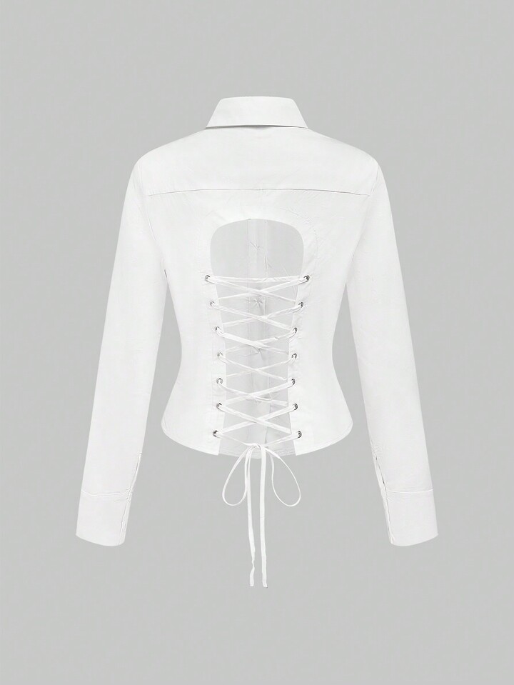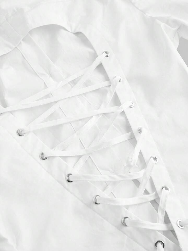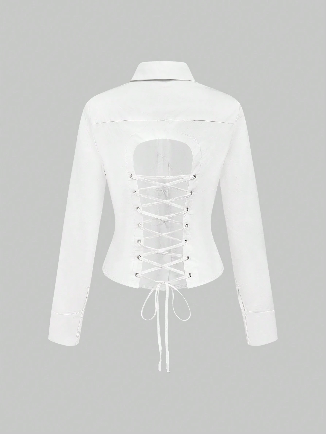 Grunge Punk Y2K Backless Cross Strap Cinched Waist Shirt