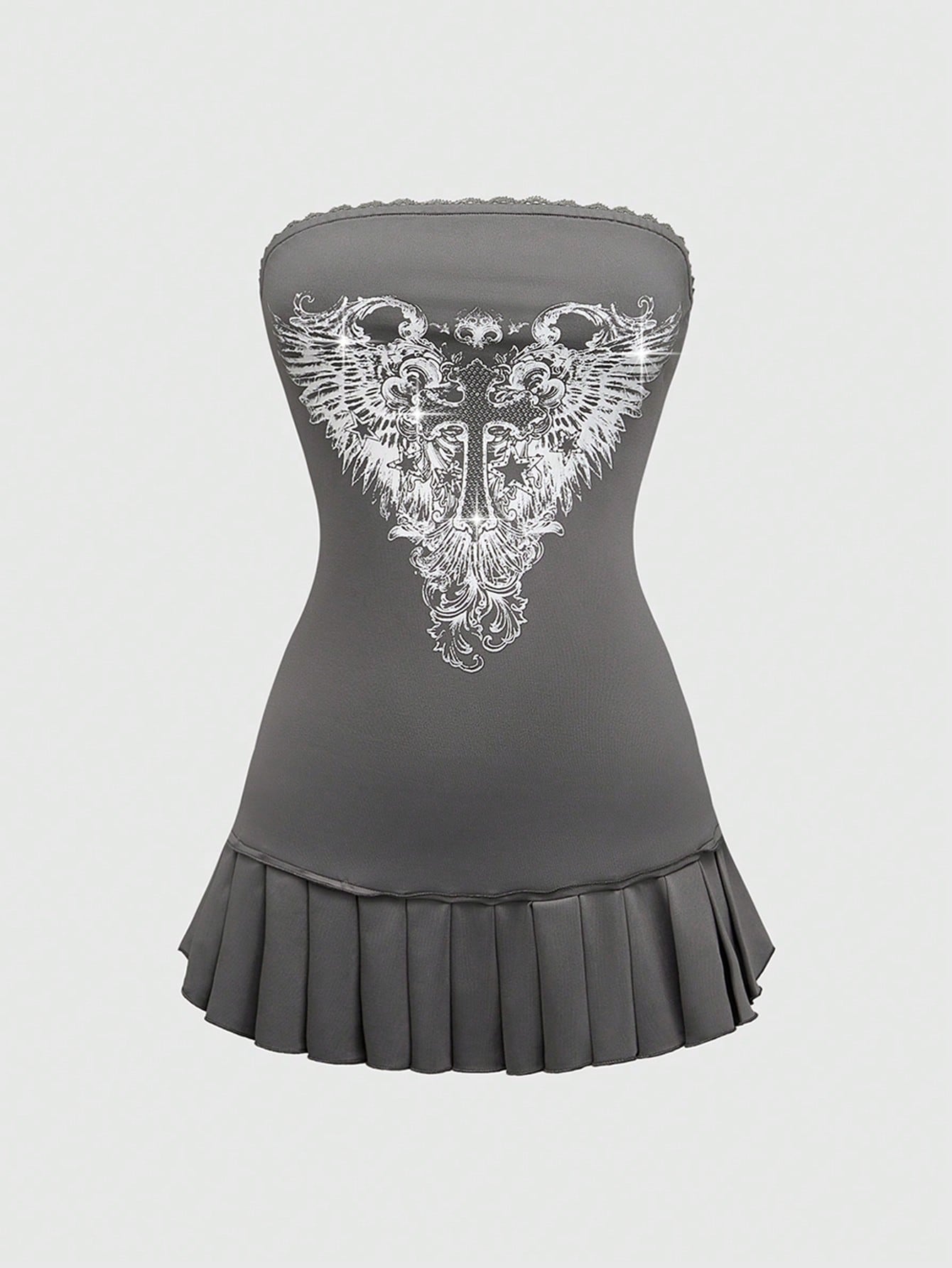Grunge Punk Y2K Cropped Cross Print Mini Strap Dress For Women