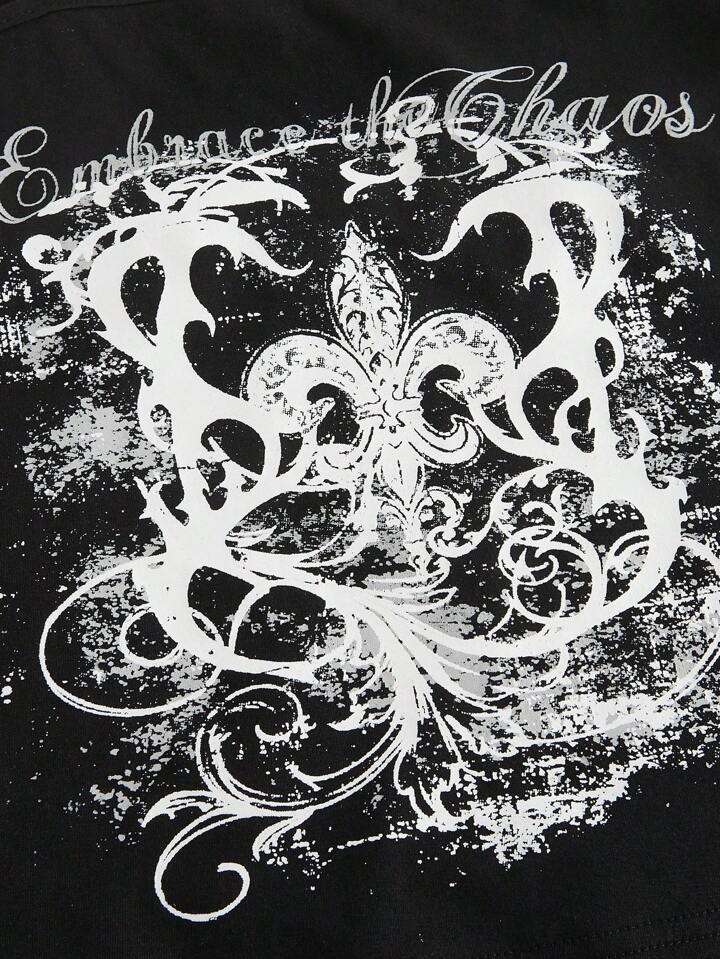 Grunge Punk Y2K Dark Lily Floral Splicing Faux 2-In-1 Black & Grey Striped Tank Top