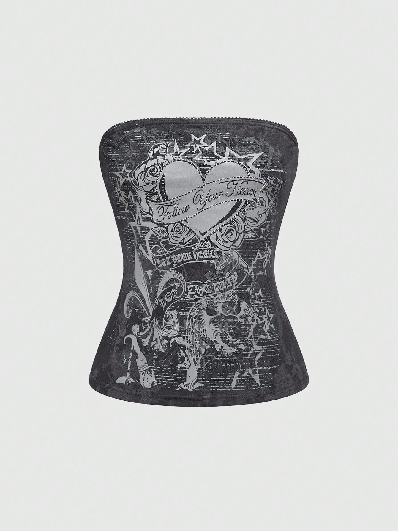 Grunge Punk Y2K Grunge Chic Heart & Rose Rhinestone Embellished Cropped Tank Top For Women