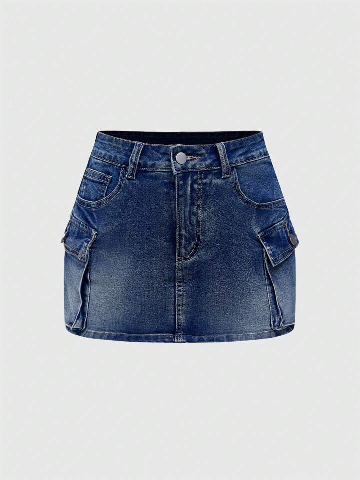 Grunge Punk Y2K Harajuku Sexy Low-Waist Bodycon Denim Skirt With 3D Pockets
