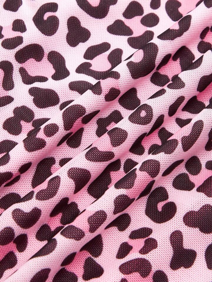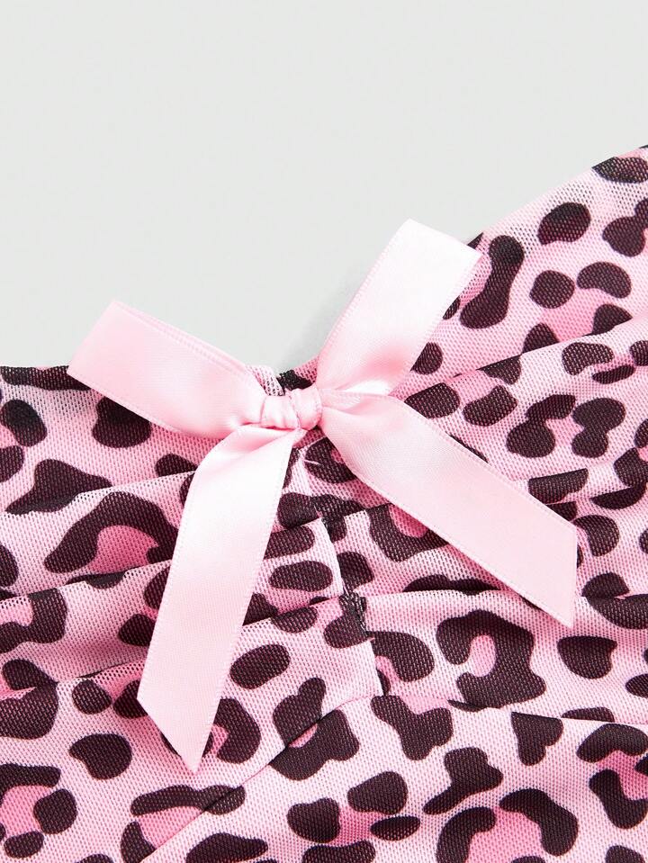Grunge Punk Y2K Harajuku Style Leopard Print Mesh Strapless Tube Top With Bow Decoration And Ruched For Women, School