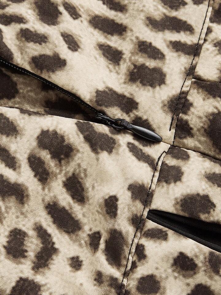 Grunge Punk Y2K Harajuku Style Leopard Print & Metal Decor Women Low Waist Mini Pleated Skirt