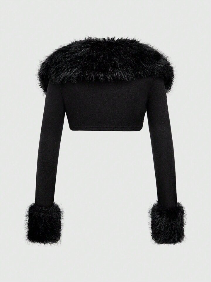 Grunge Punk Y2K Harajuku Style Patchwork Leopard Print Fluffy Collar Cropped Cardigan For Women