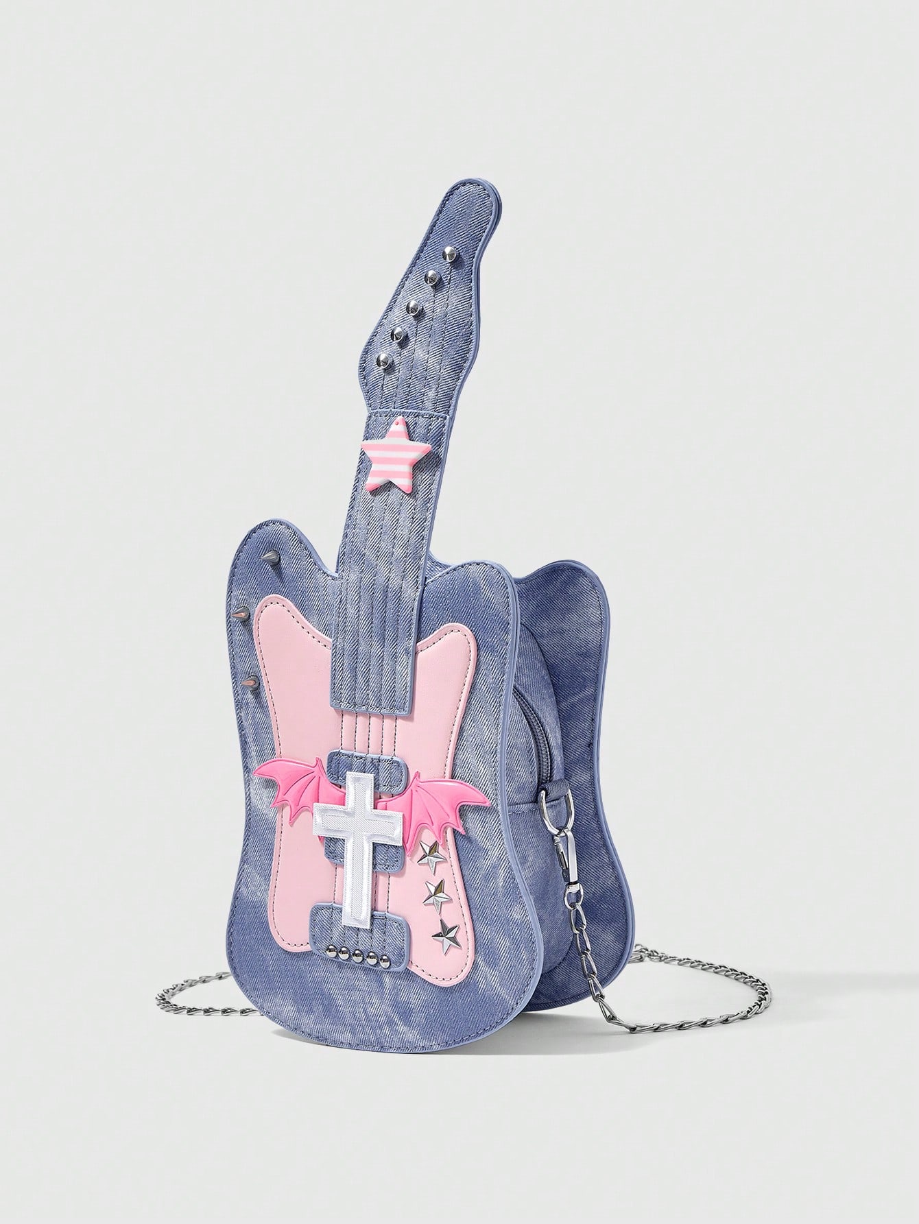 Grunge Punk Y2K Punk Cute Star Skull Wing Cross Design Women's Shoulder Bag, Party/Music Festival Personalized Rock Patchwork Rivet Guitar Messenger Bag