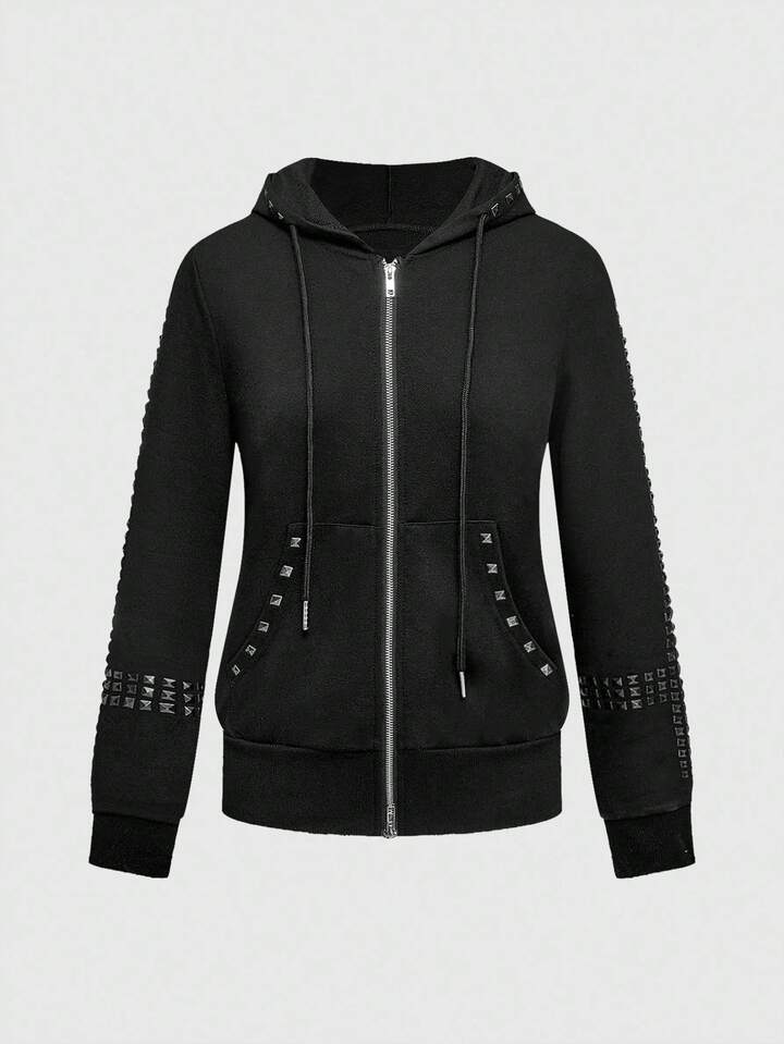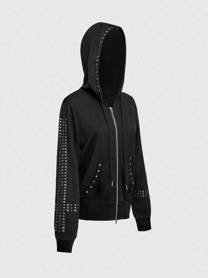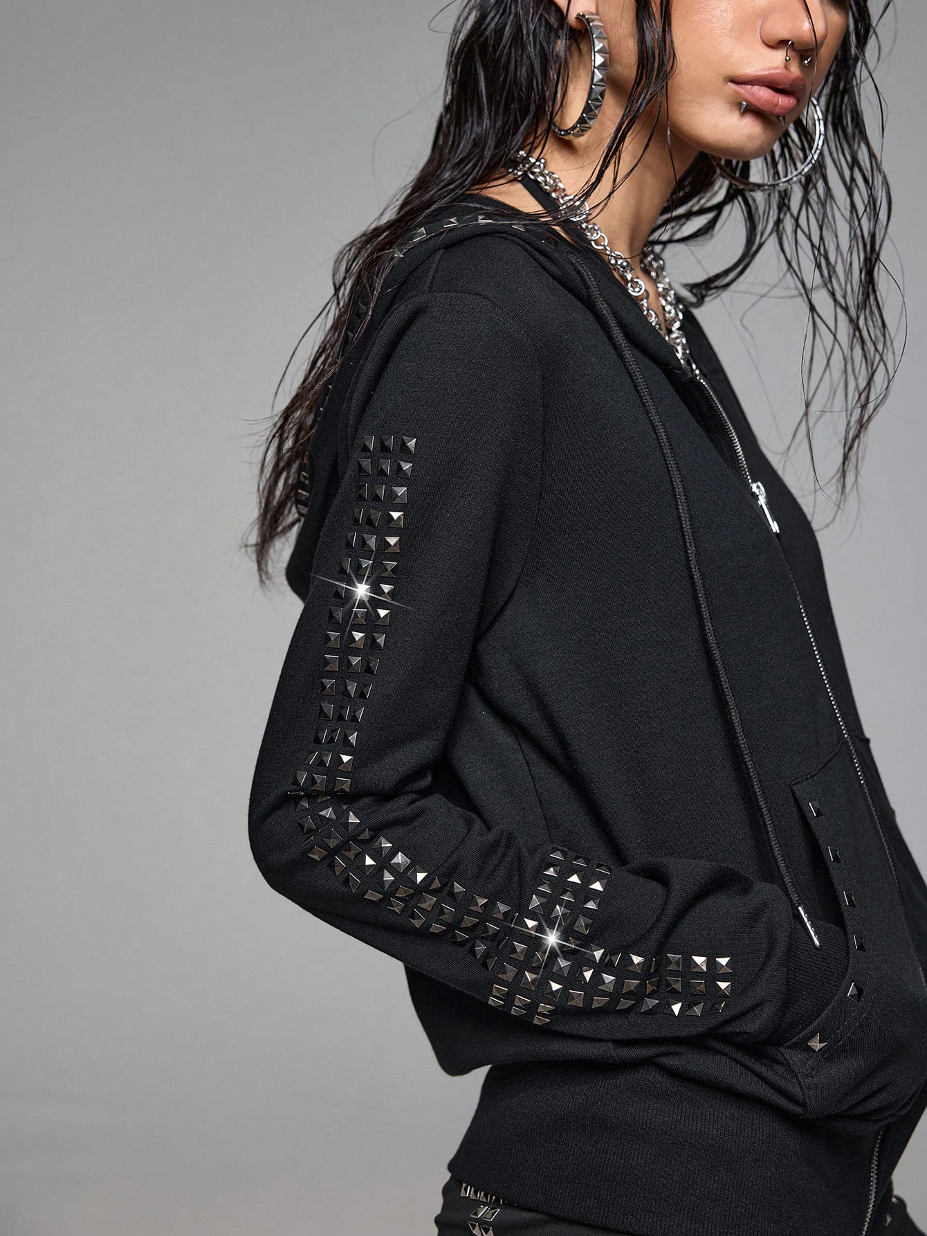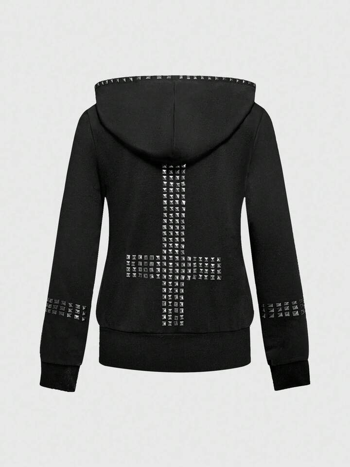 Grunge Punk Y2K Punk Hot Girl Cross Rivet Rhinestone Embellished Women Hooded Sweatshirt Sweatshirt