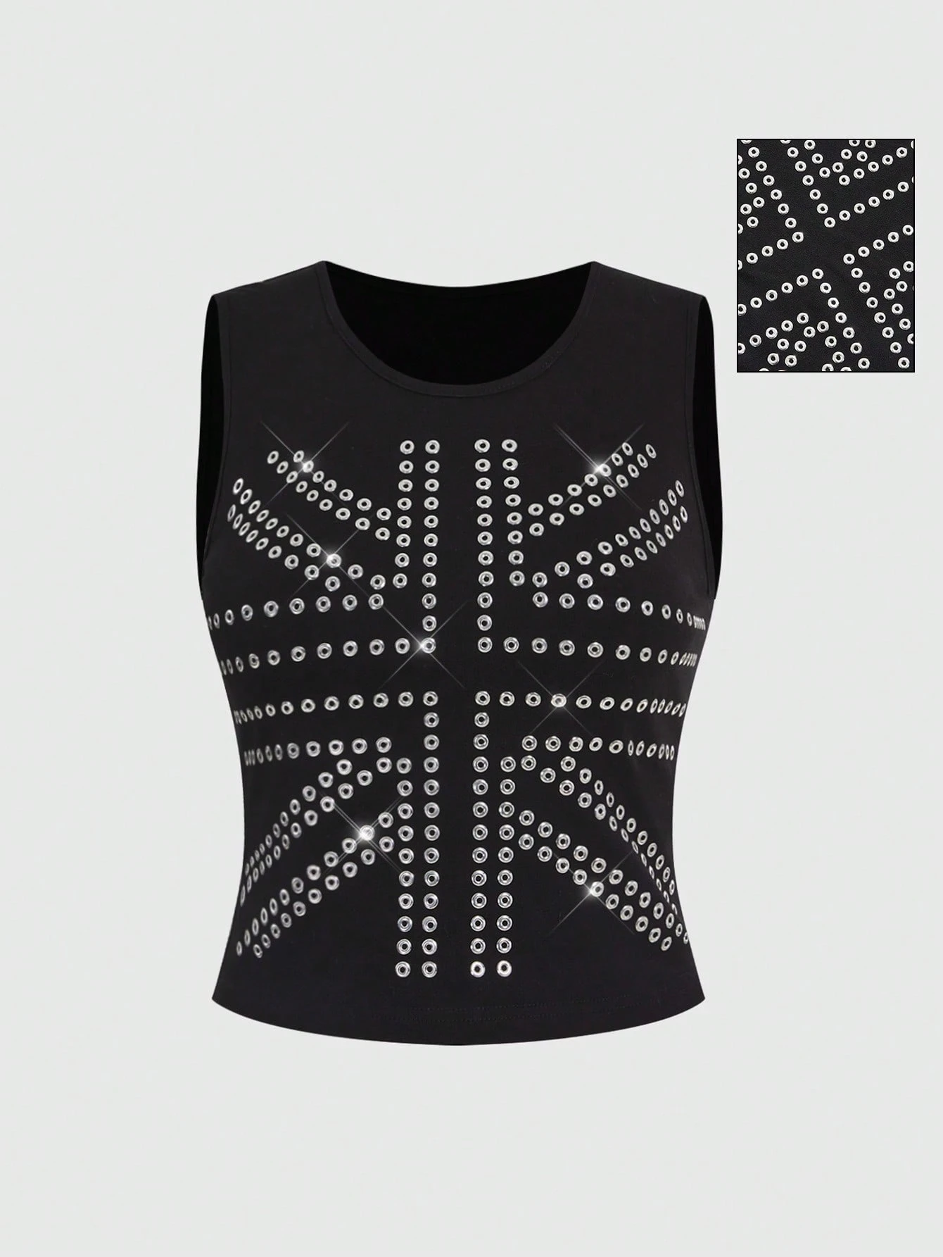 Grunge Punk SummergraphicY2K Punk Union Jack Graphic Fitted T-Shirt, Solid Color Versatile Women Tank Top