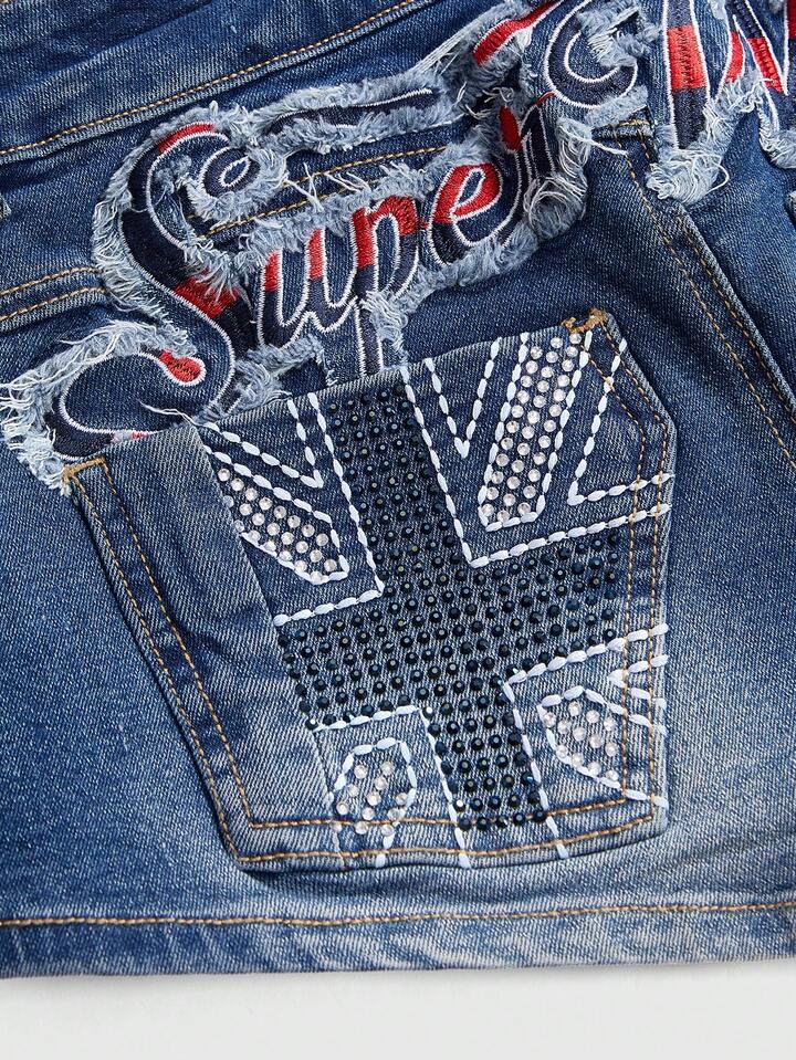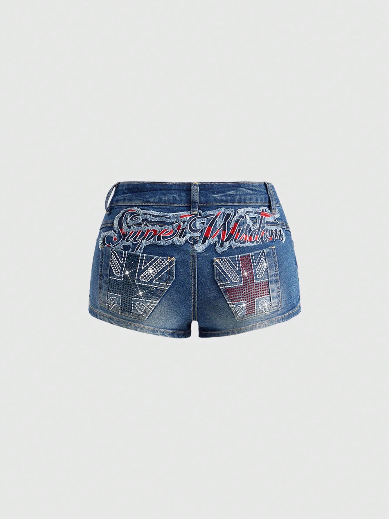 Grunge Punk Y2K Rhinestone Union Jack Super Low-Rise Women Denim Shorts