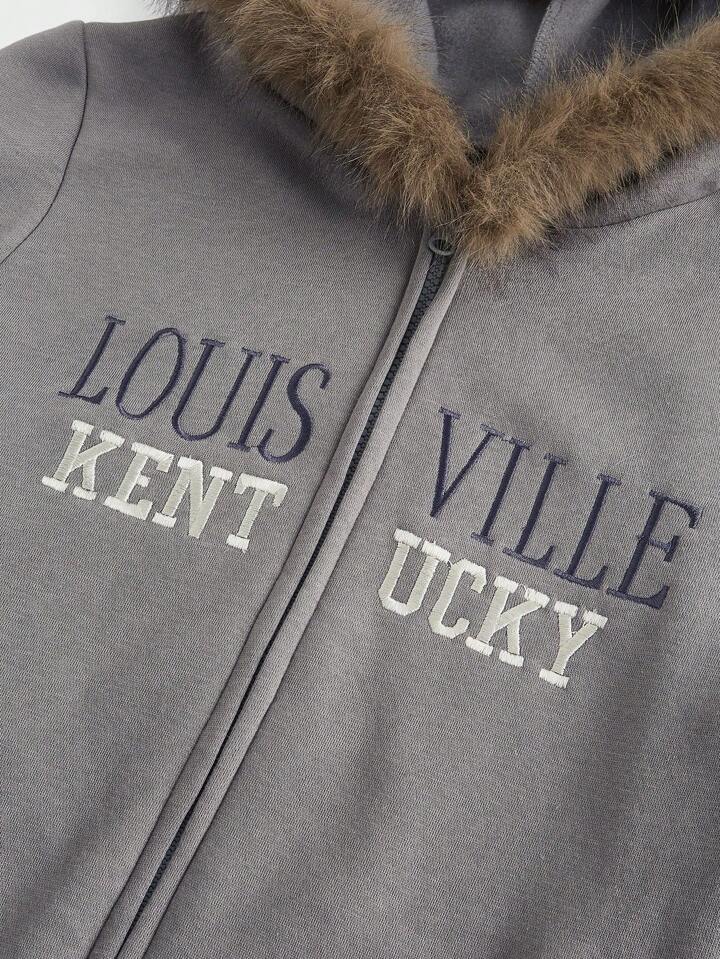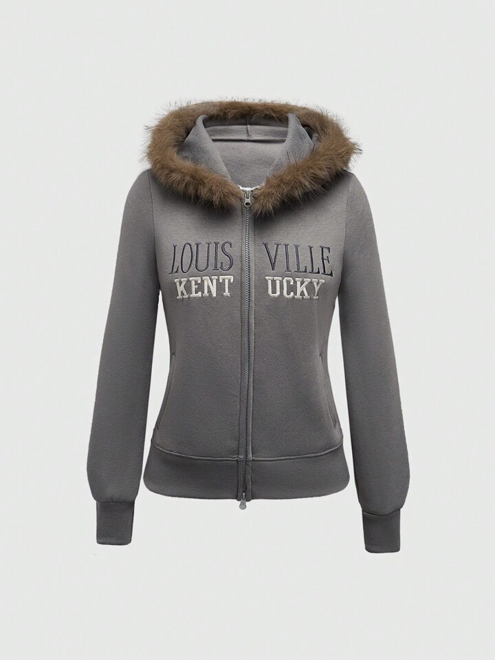 Grunge Punk Y2K Sexy Girl Vintage Style Embroidered Slogan Contrast Collar Fitted Pocket Hoodie For Women