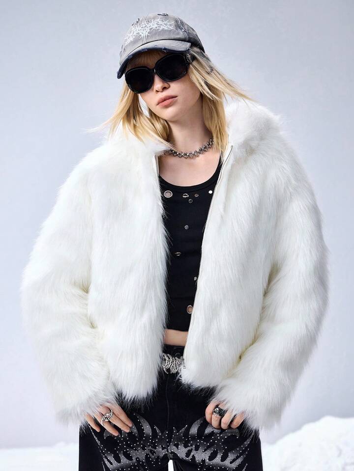 Grunge Punk Y2K Stylish Faux Fur Jacket For Women