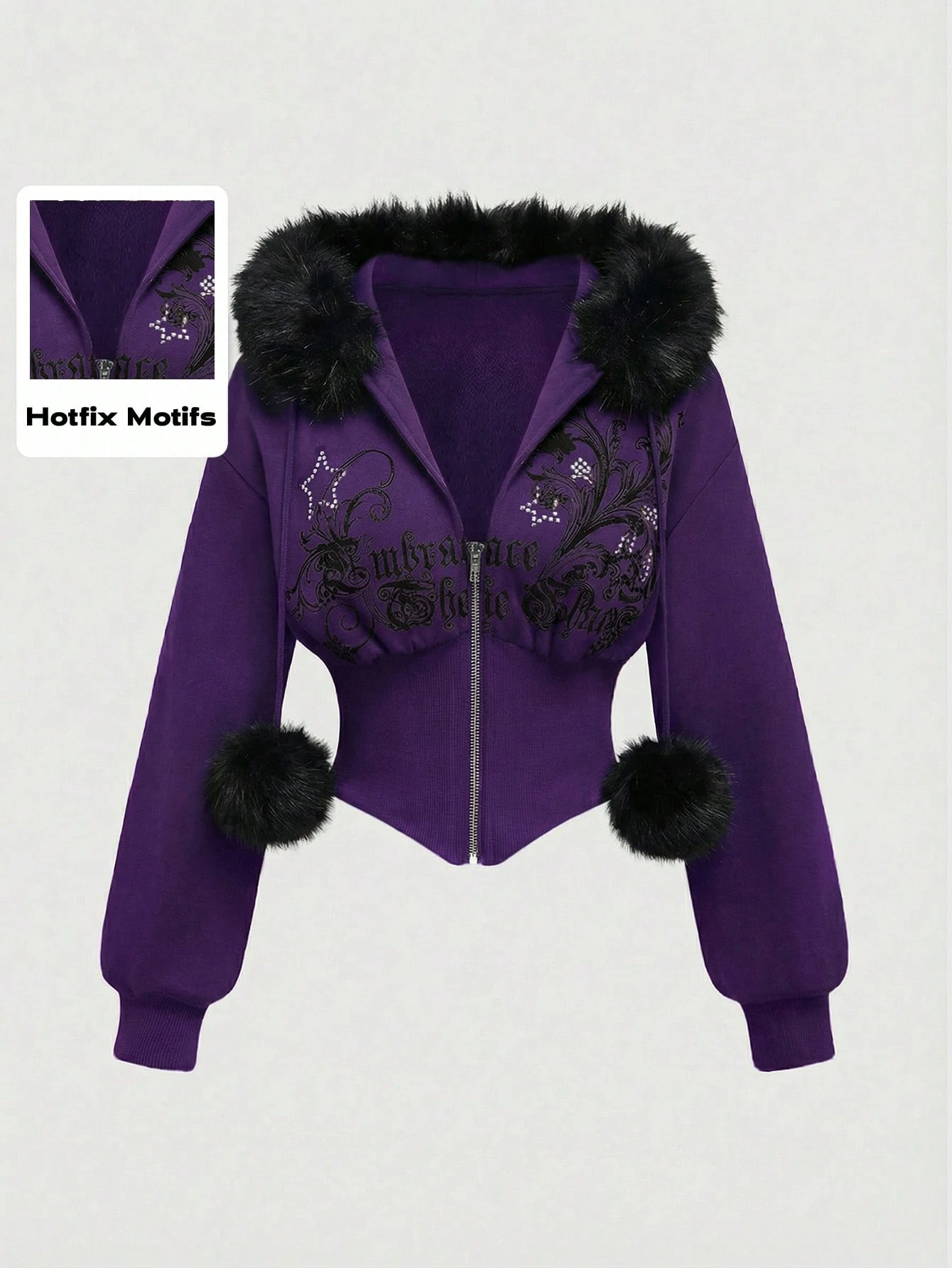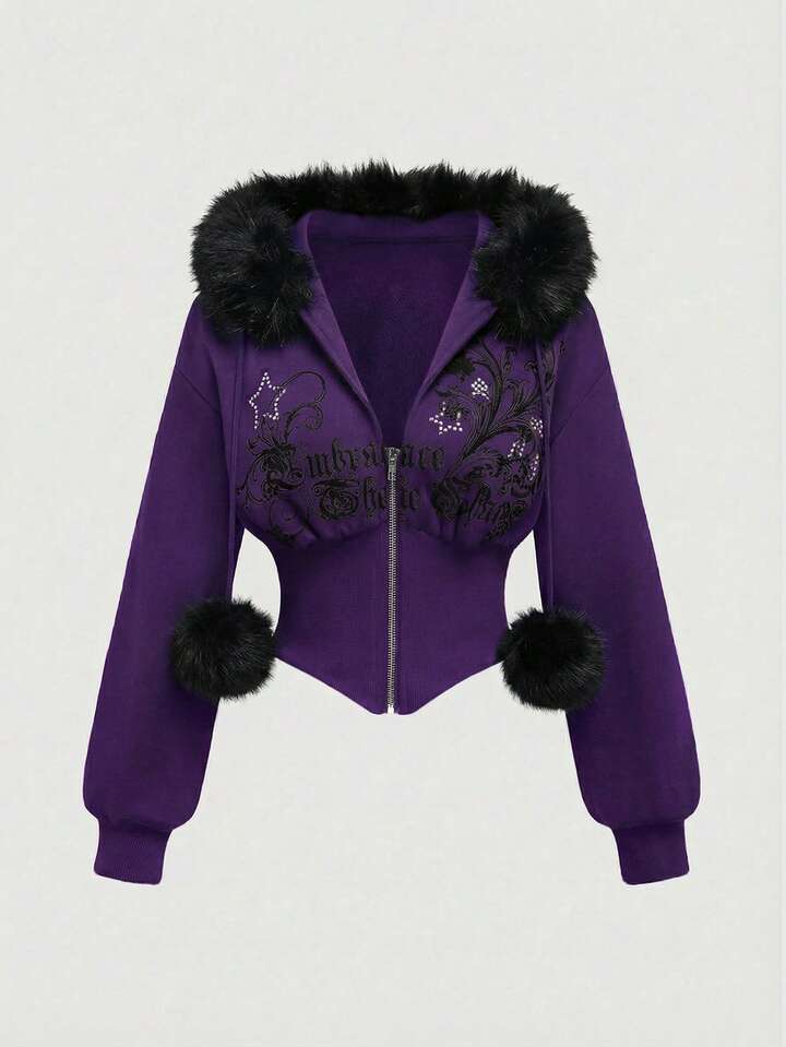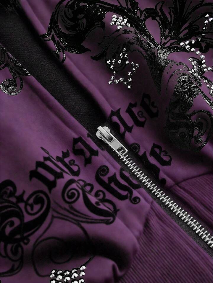Grunge Punk Y2K Subculture Retro Fitted Leopard Print Hooded Sweatshirt With Vintage Floral Print And Rhinestone Decor For Women