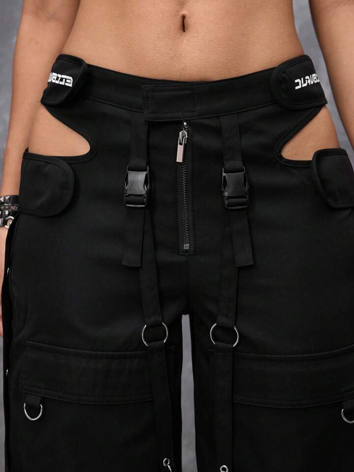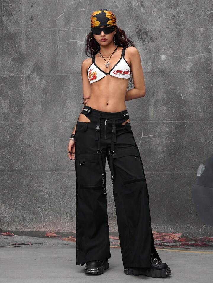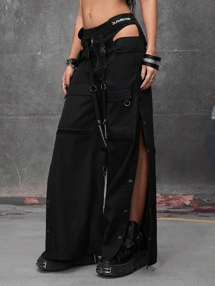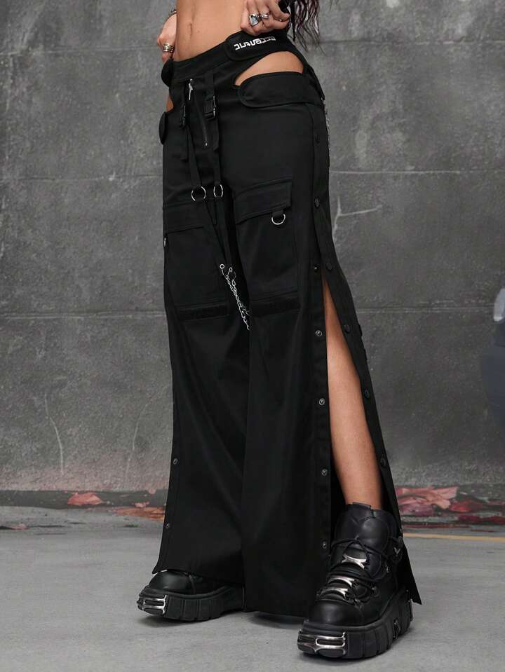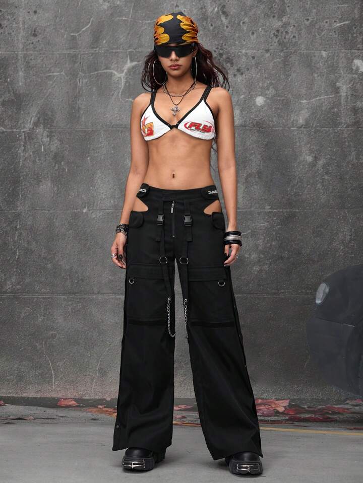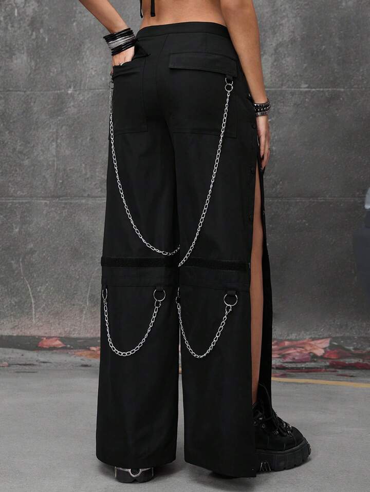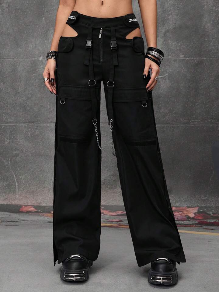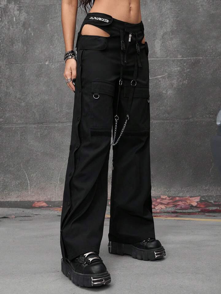 Grunge Punk Y3K Function Style Side Metal Buckle Metal Chain Cargo Pants