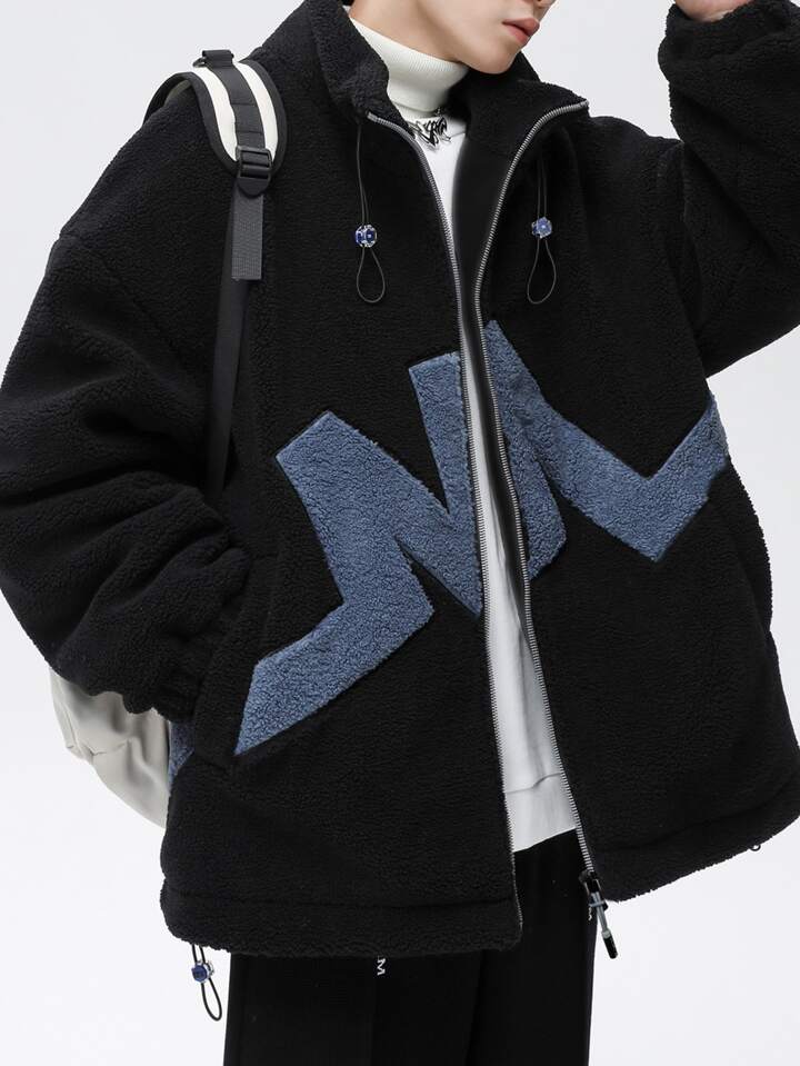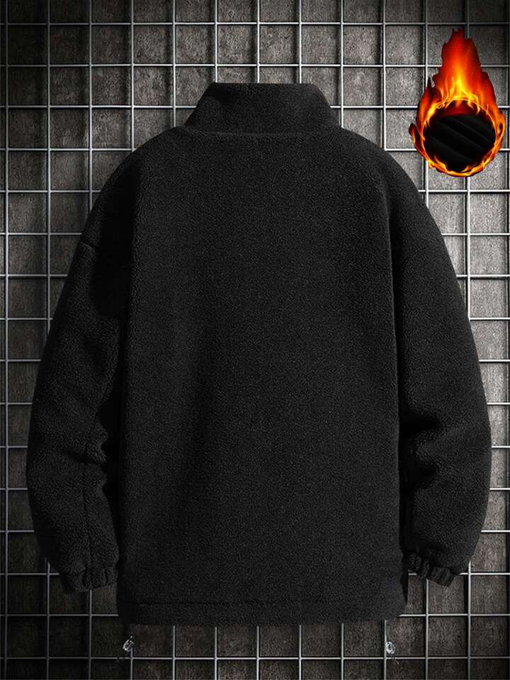 Guys 1pc Letter Graphic Zip Up Thermal Lined Fuzzy Coat