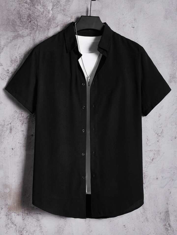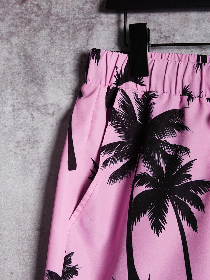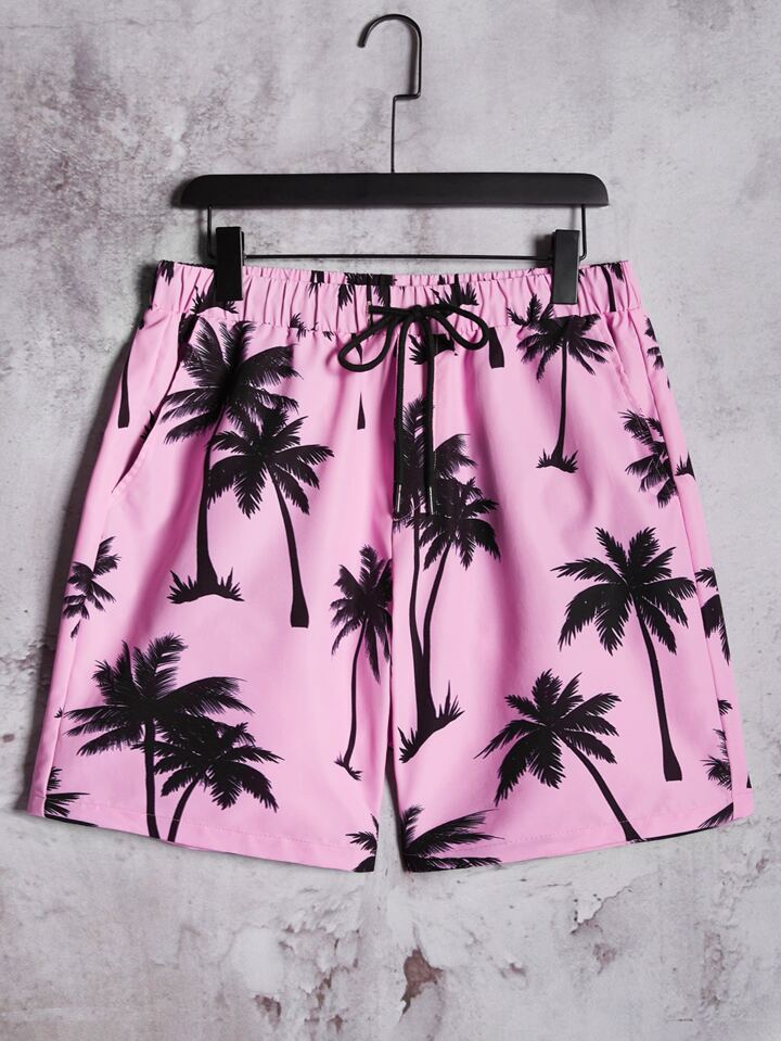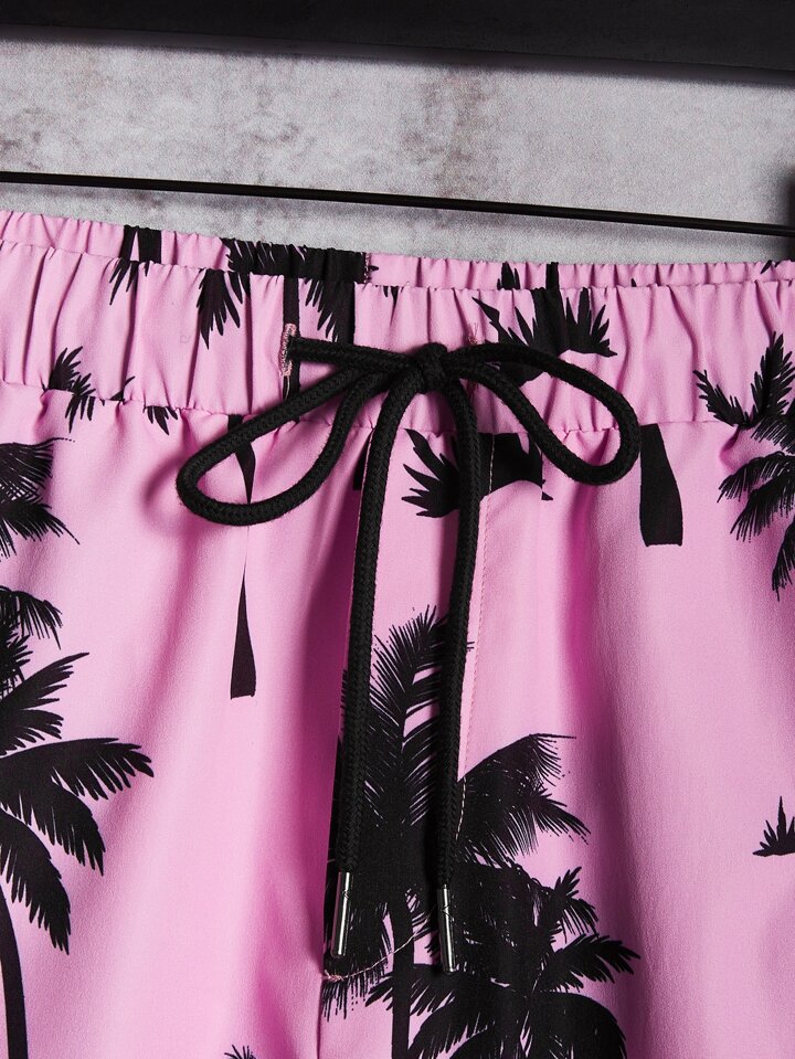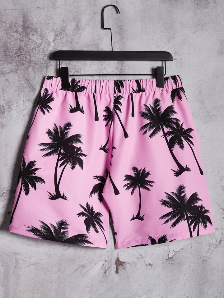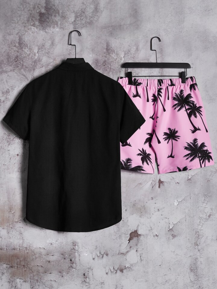 Guys 1pc Solid Shirt & 1pc Tropical Print Shorts