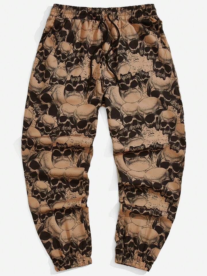Guys Allover Skull Print Drawstring Waist Pants