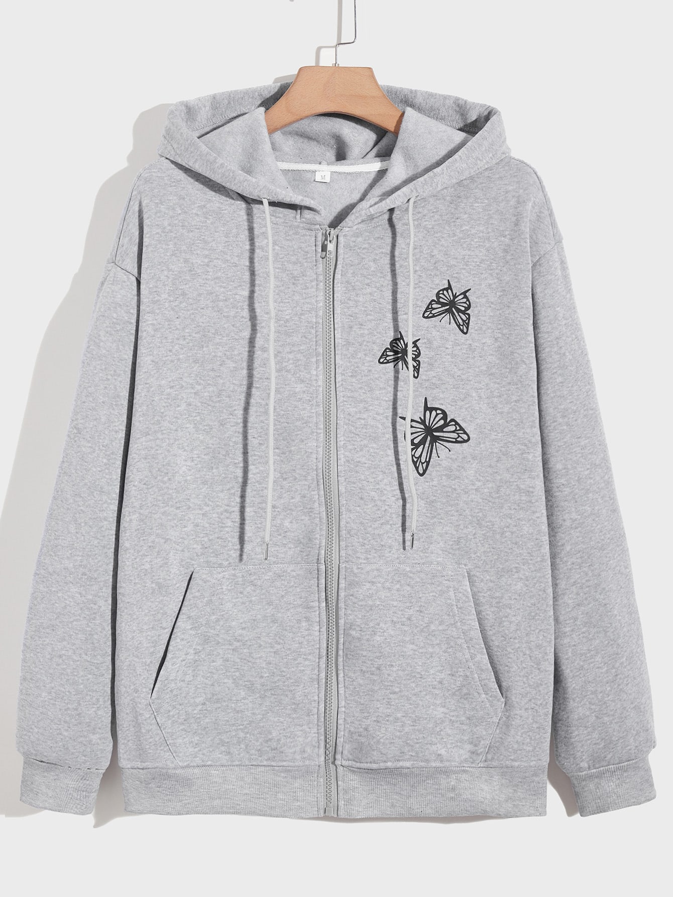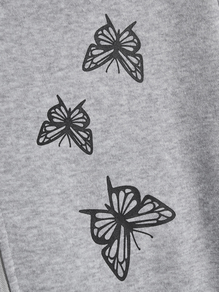 Guys Butterfly Print Zip Up Kangaroo Pocket Drawstring Hoodie