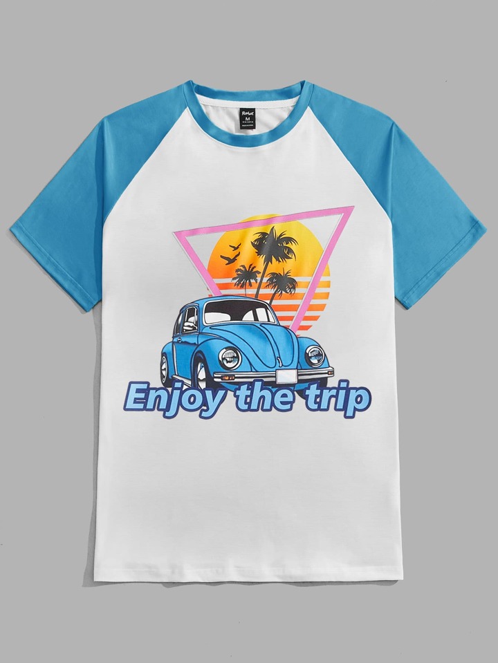 Guys Car Print Raglan Sleeve Tee