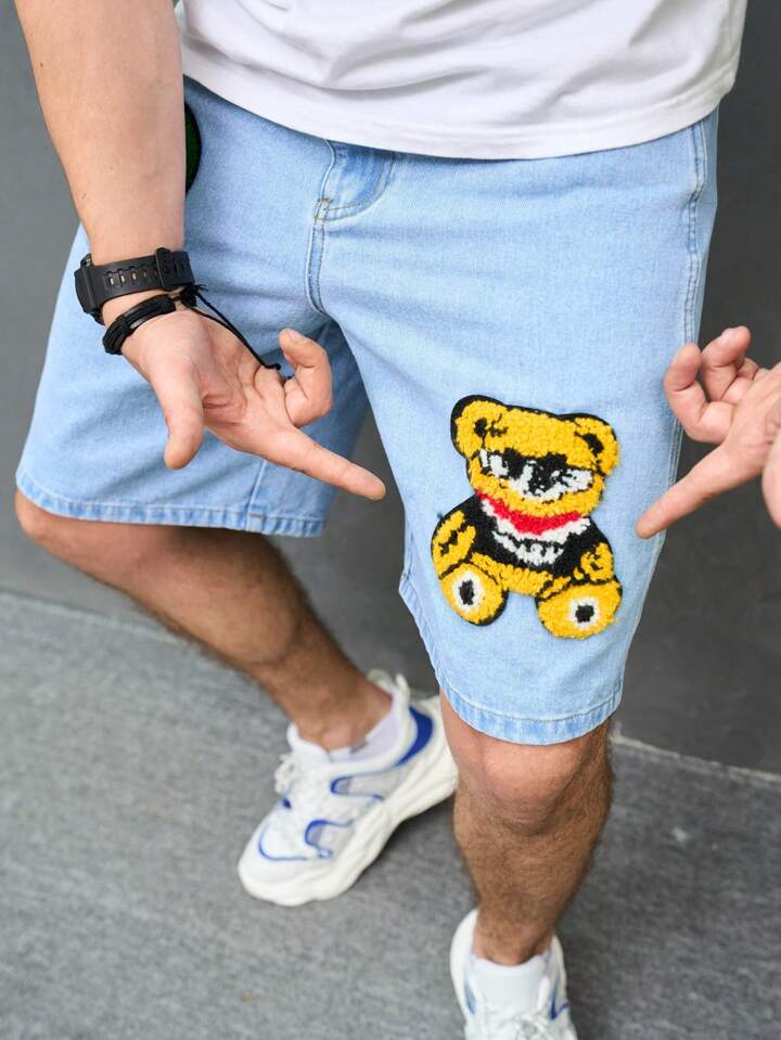 Guys Cartoon & Letter Graphic Denim Shorts