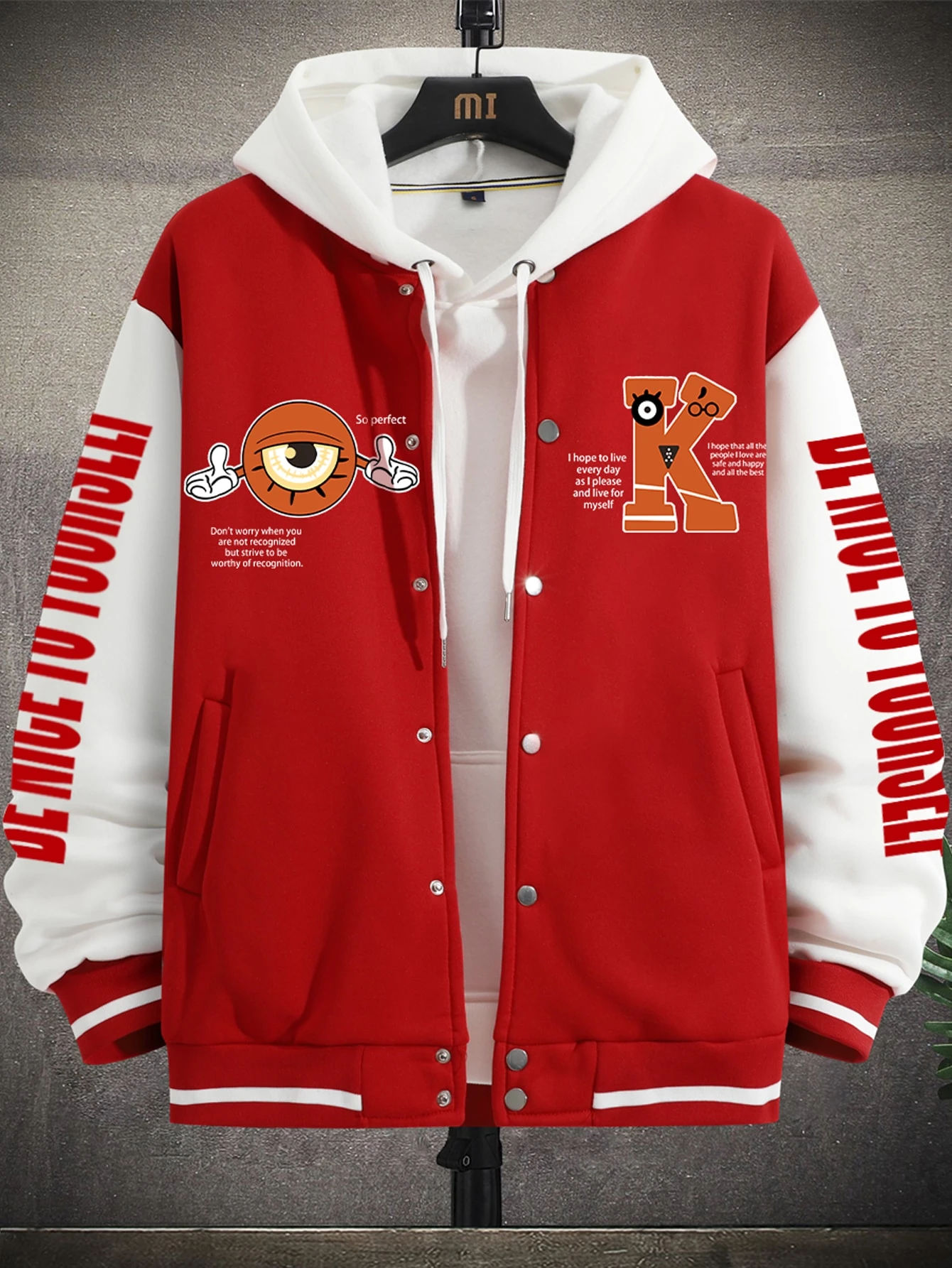 Guys Cartoon & Slogan Graphic Drop Shoulder Varsity Jacket Without Hoodie