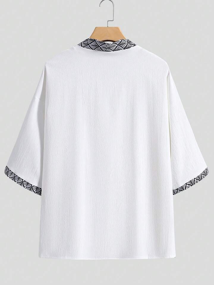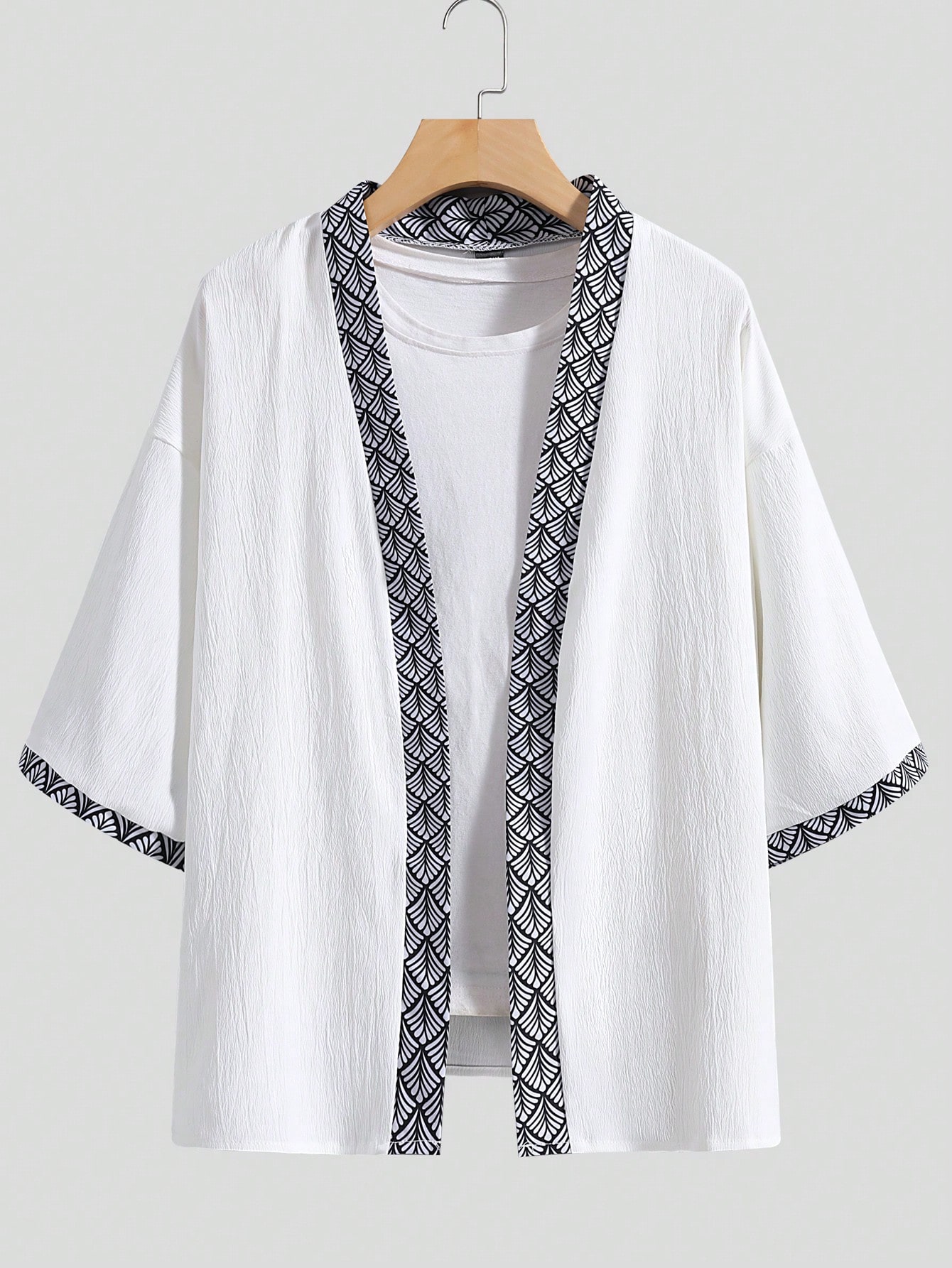 Guys Contrast Trim Drop Shoulder Kimono Without Tee