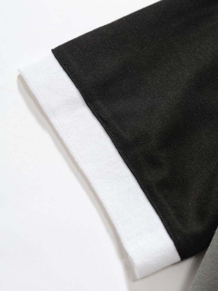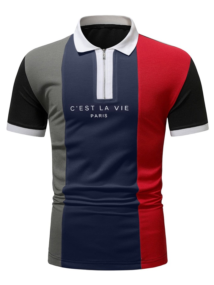 Guys Cut And Sew Quarter Zip Slogan Graphic Polo Shirt
