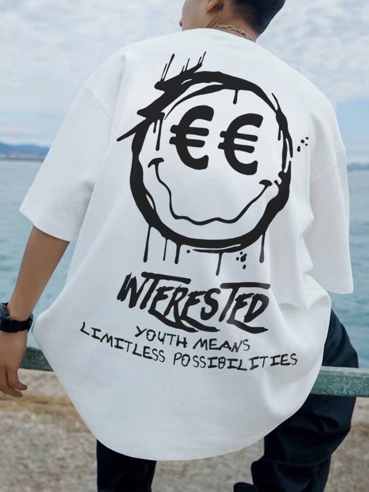 Guys Expression & Slogan Graphic Drop Shoulder Tee