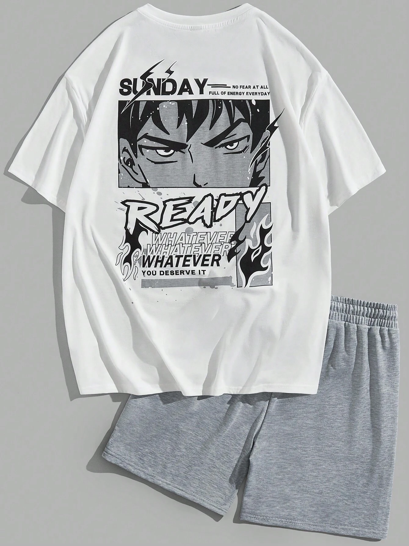 Guys Figure & Slogan Graphic Tee & Drawstring Waist Shorts