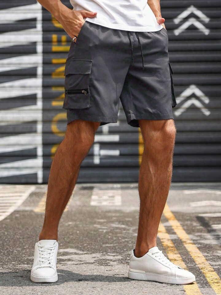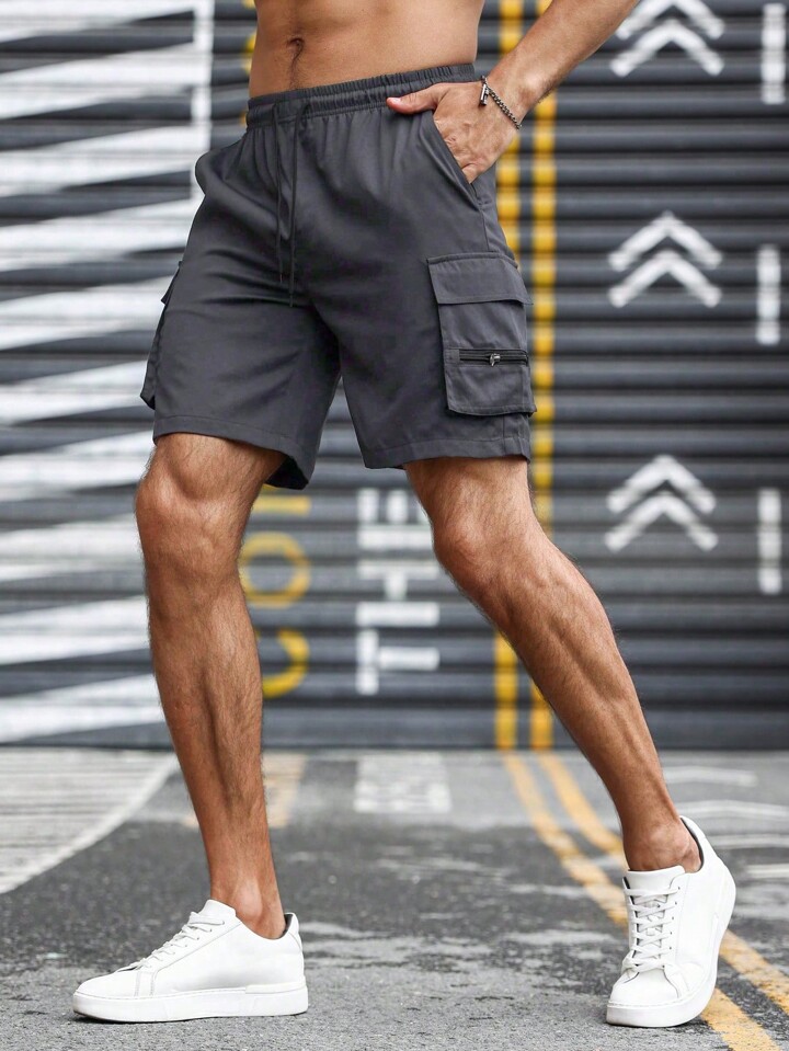 Guys Flap Pocket Drawstring Waist Cargo Shorts