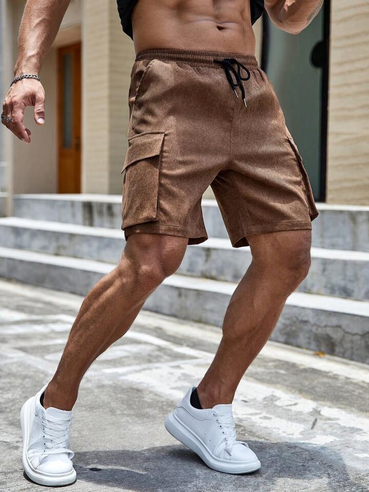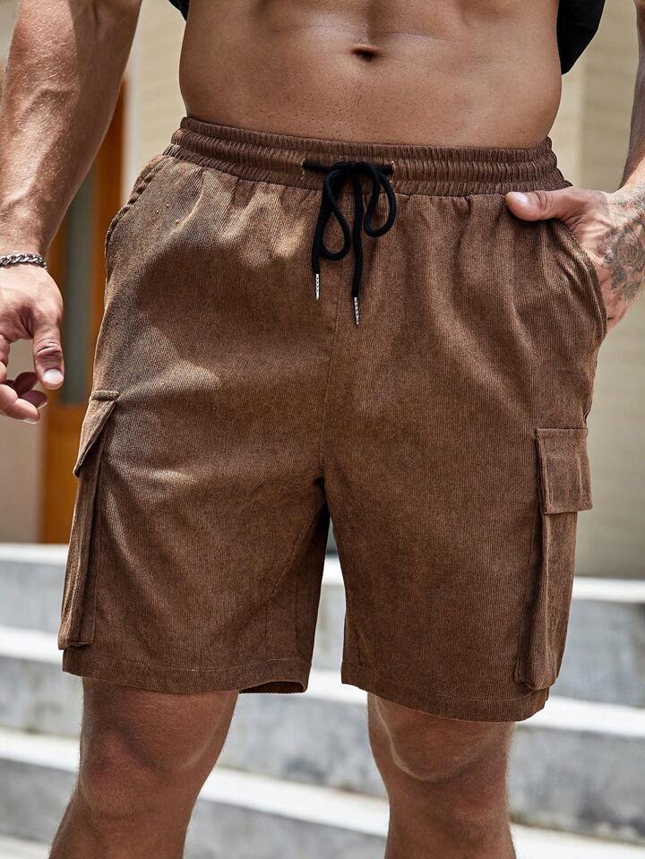 Guys Flap Pocket Drawstring Waist Cargo Shorts