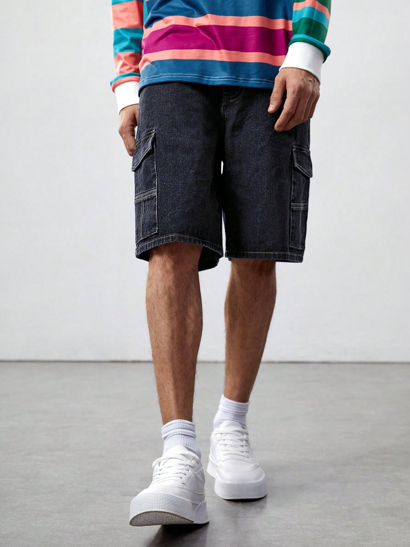 Guys Flap Pocket Side Bermuda Denim Shorts