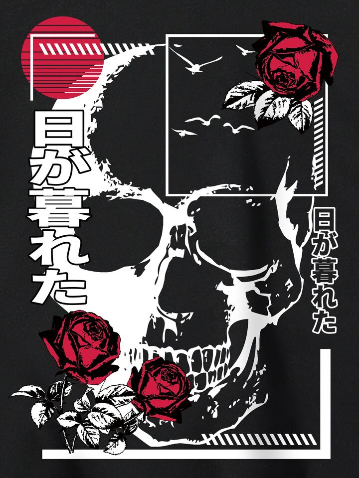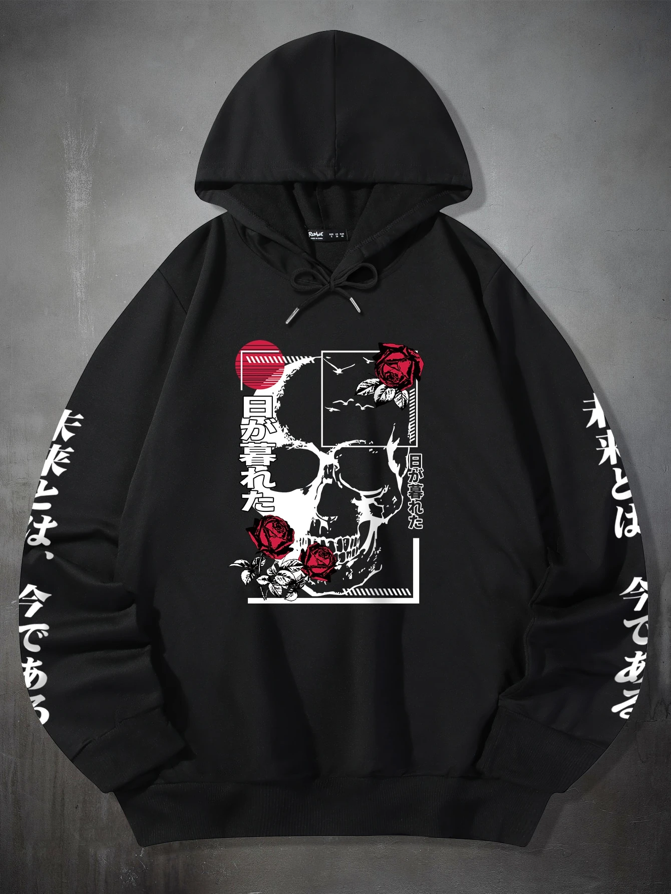 Guys Floral & Skull Graphic Drawstring Hoodie