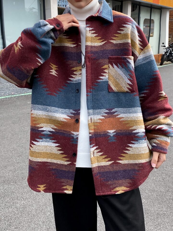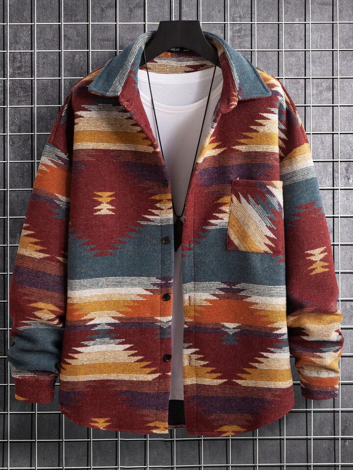 Guys Geo Print Pocket Patched Overcoat Without Tee