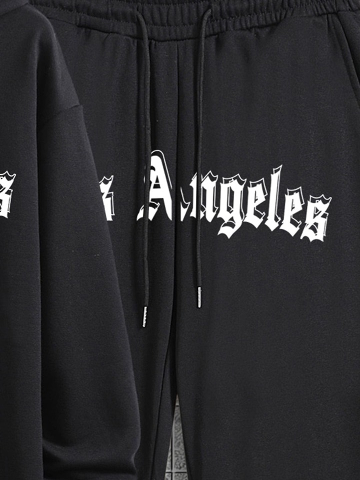Guys Letter And Pigeon Print Drawstring Hoodie & Sweatpants