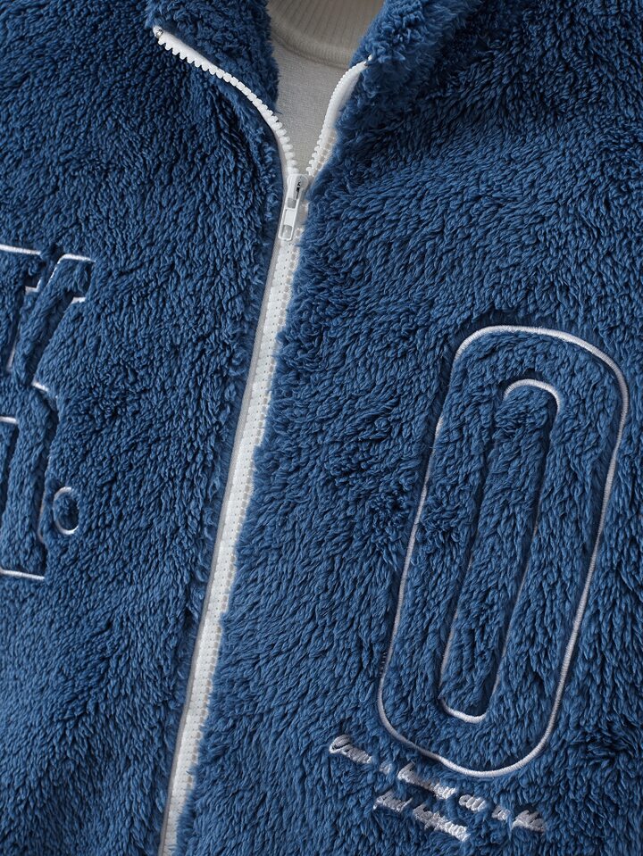 Guys Letter Embroidery Colorblock Teddy Jacket Without Sweater
