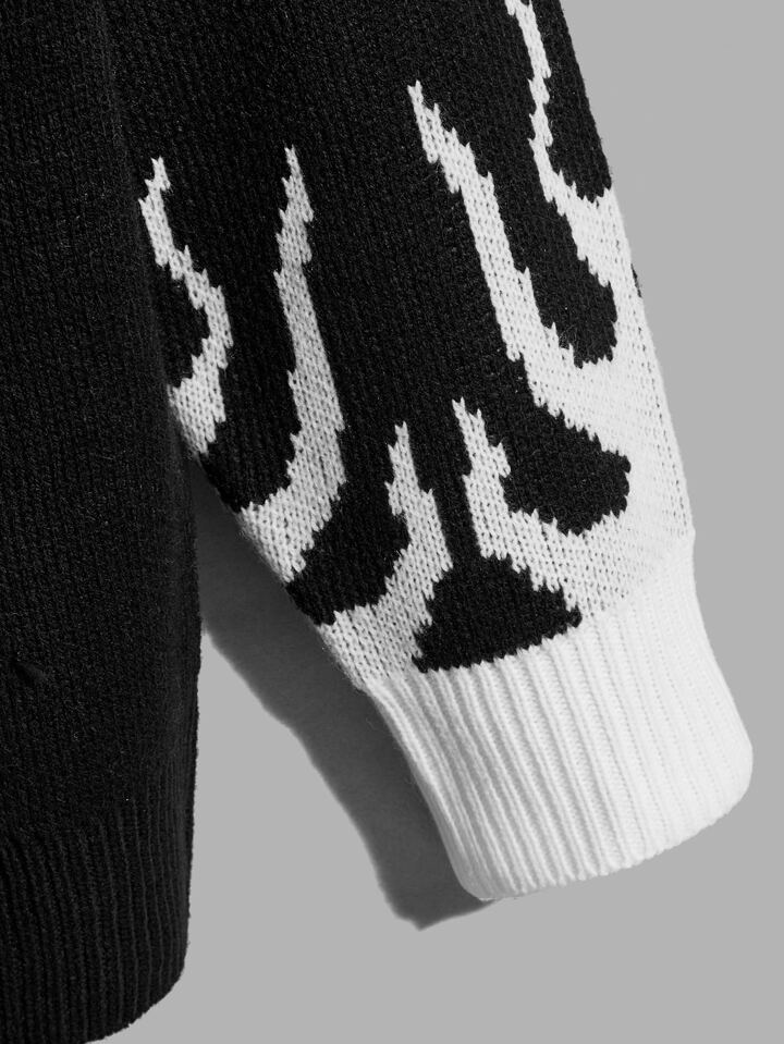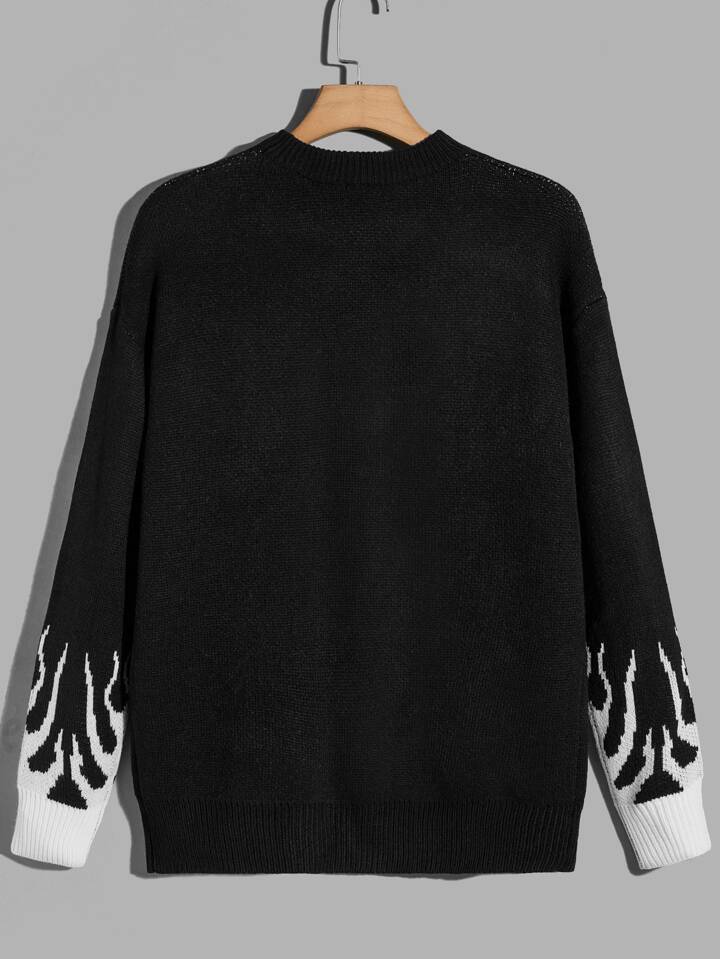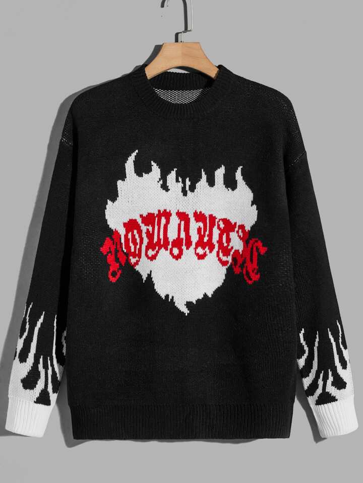 Guys Letter & Fire Pattern Drop Shoulder Sweater