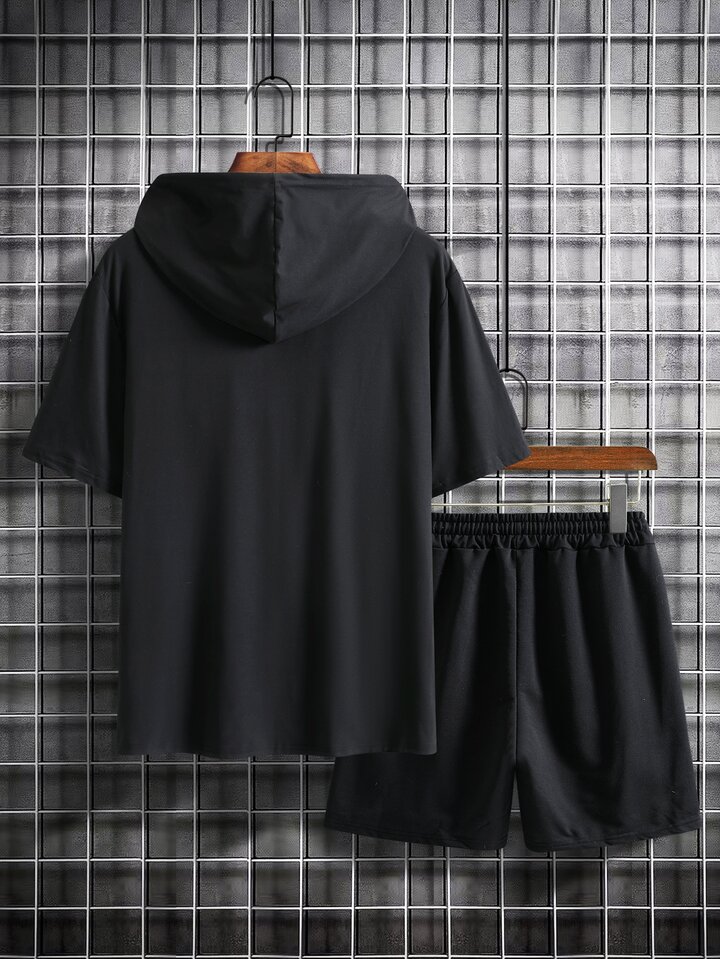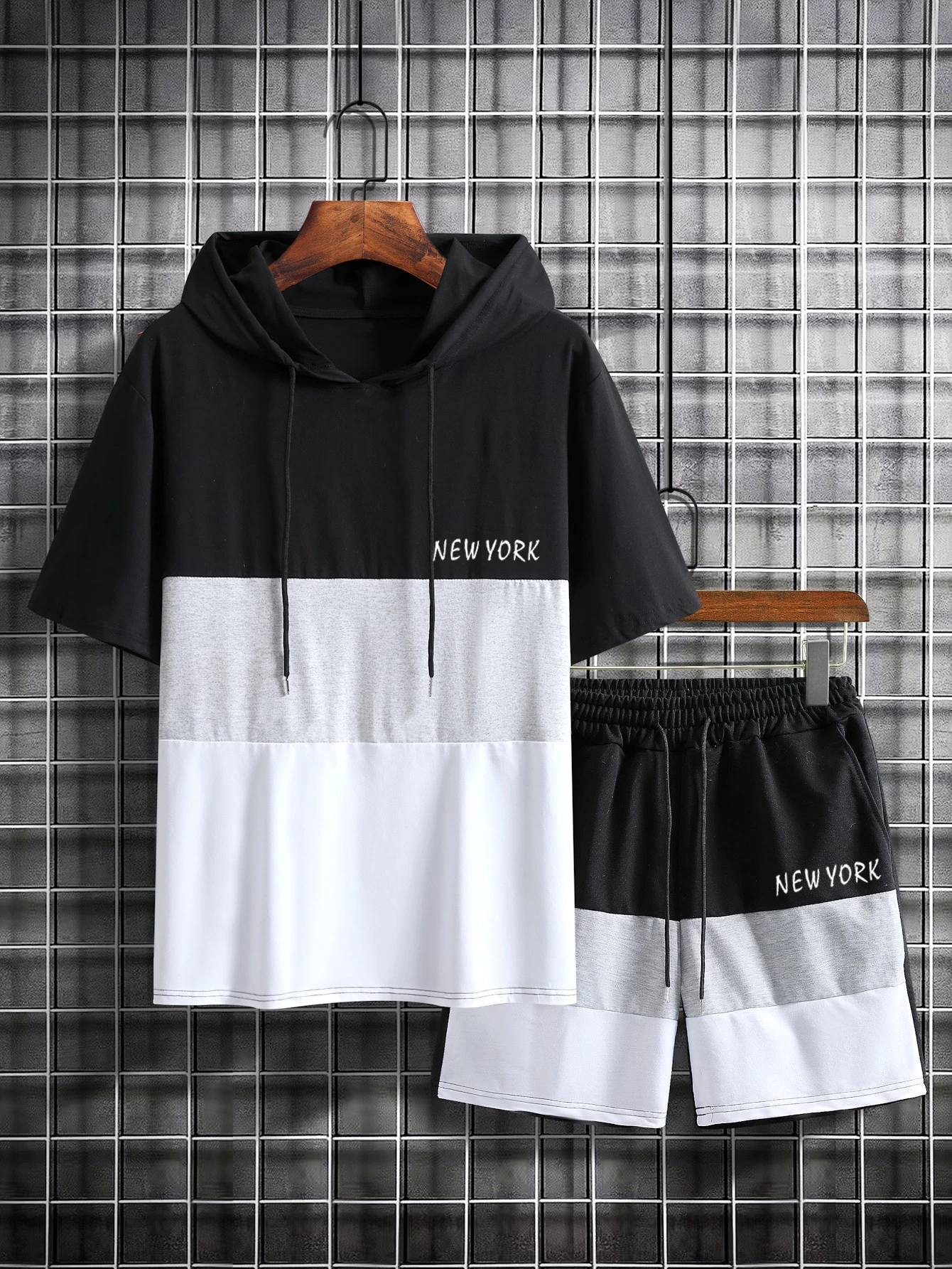 Guys Letter Graphic Colorblock Drawstring Hooded Tee & Shorts