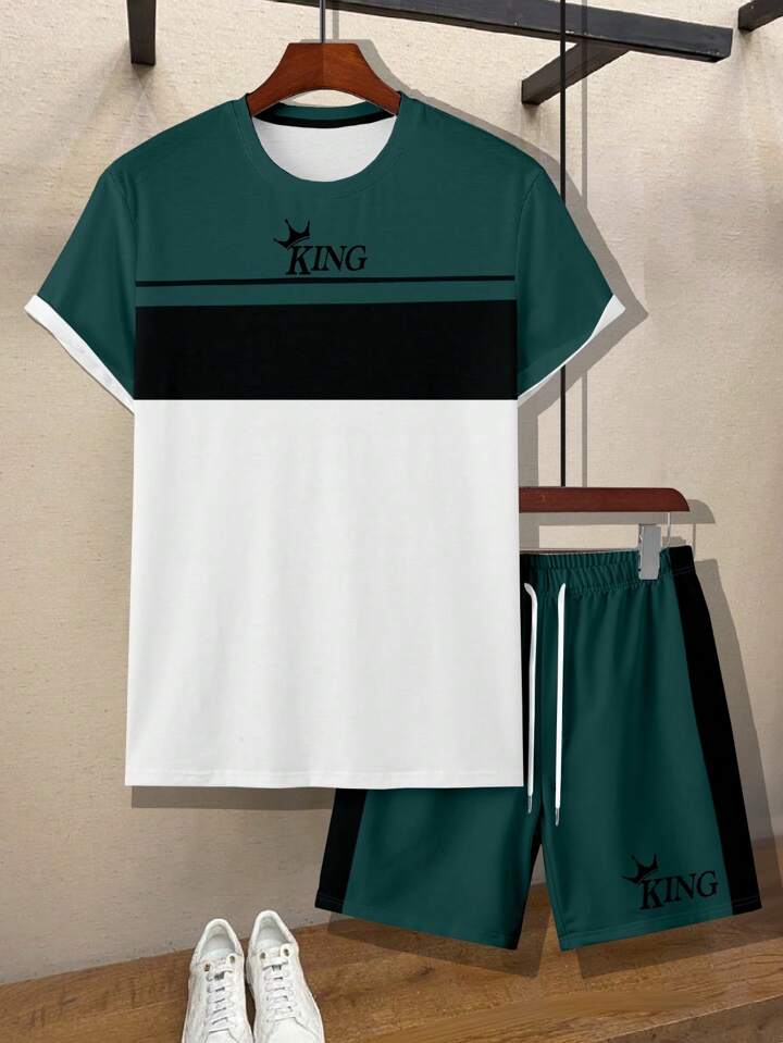 Guys Letter Graphic Colorblock Tee & Drawstring Waist Shorts