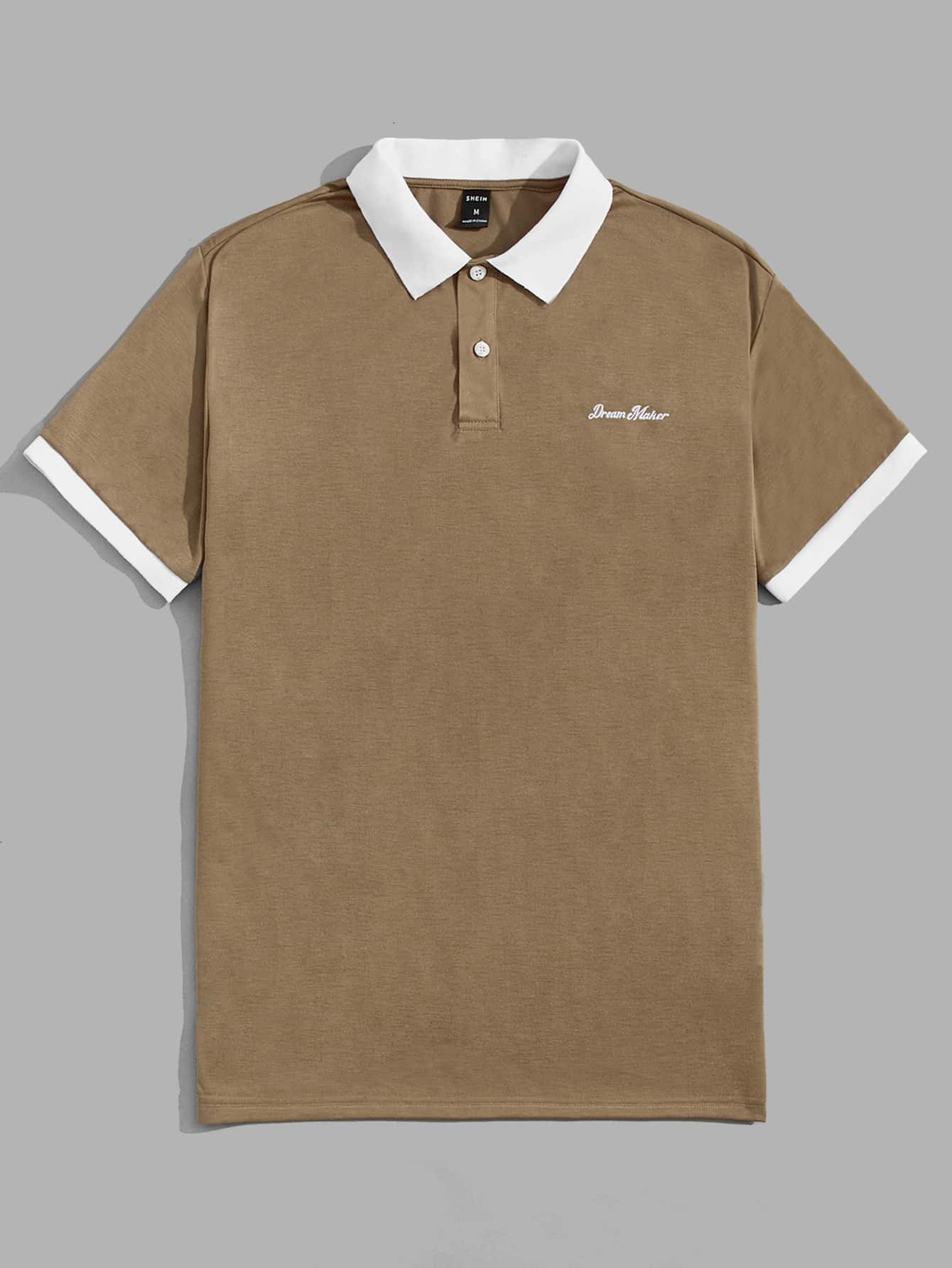 Guys Letter Graphic Contrast Trim Polo Shirt