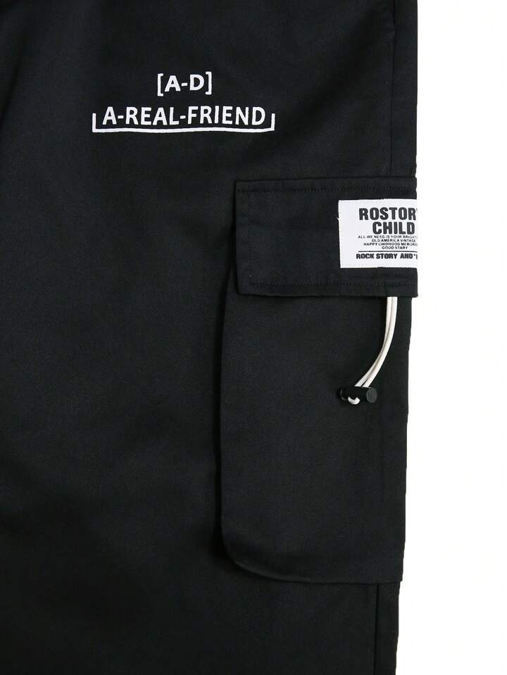 Guys Letter Graphic Flap Pocket Drawstring Waist Cargo Pants