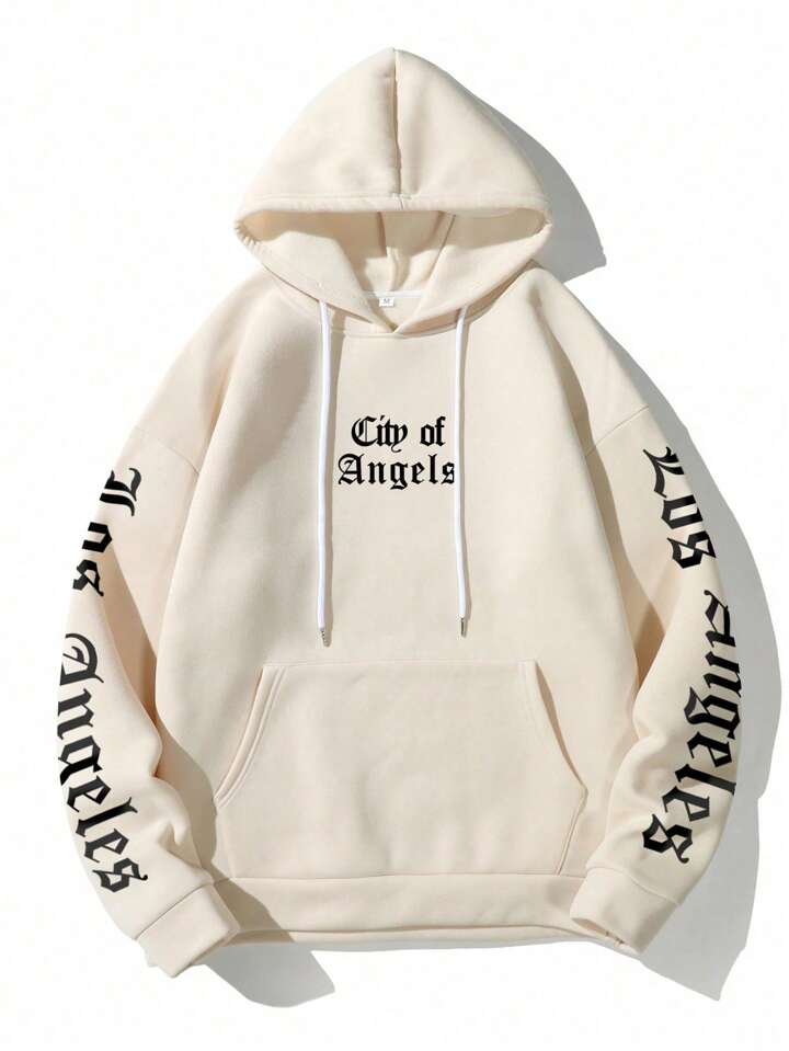Guys Letter Graphic Kangaroo Pocket Drawstring Thermal Lined Hoodie