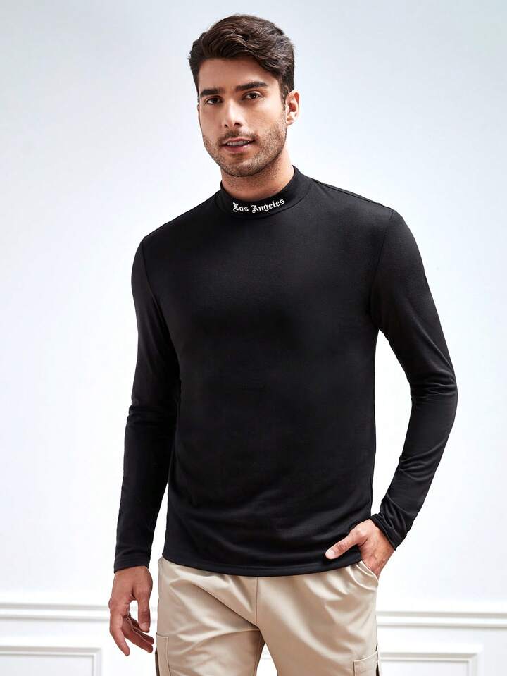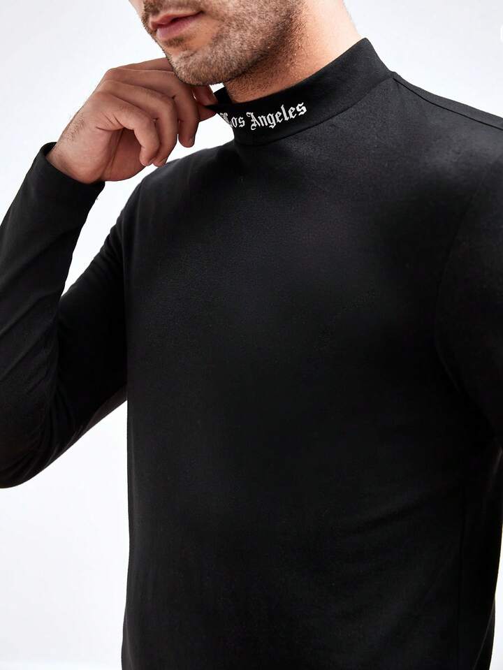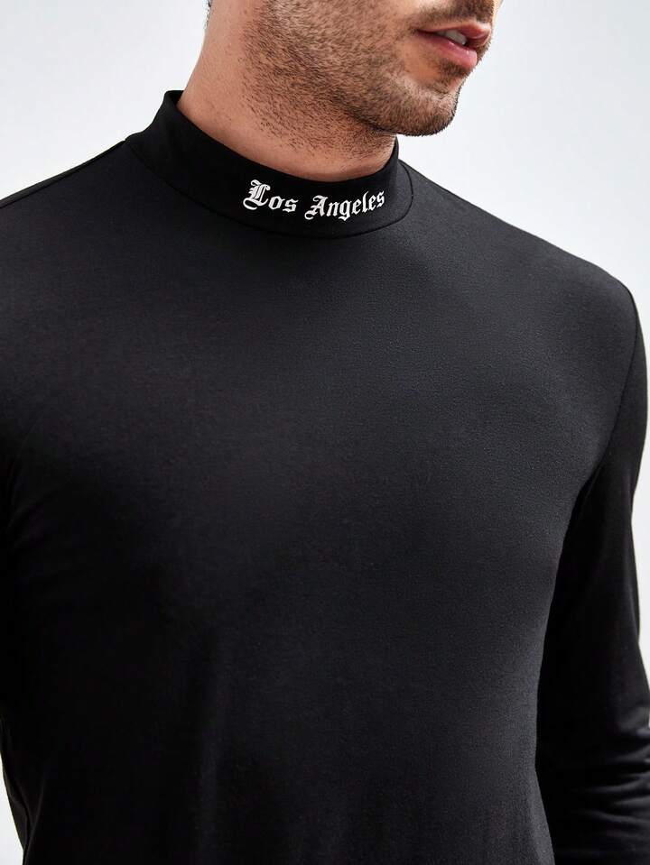 Guys Letter Graphic Mock Neck Tee