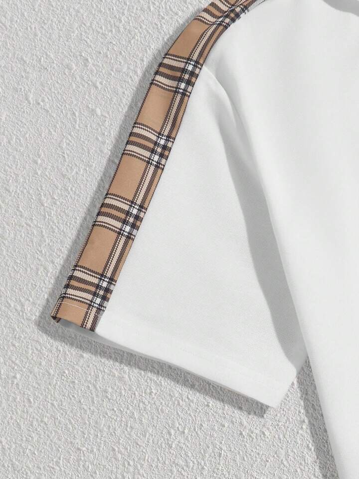 Guys Letter Graphic Plaid Polo Shirt & Drawstring Waist Shorts
