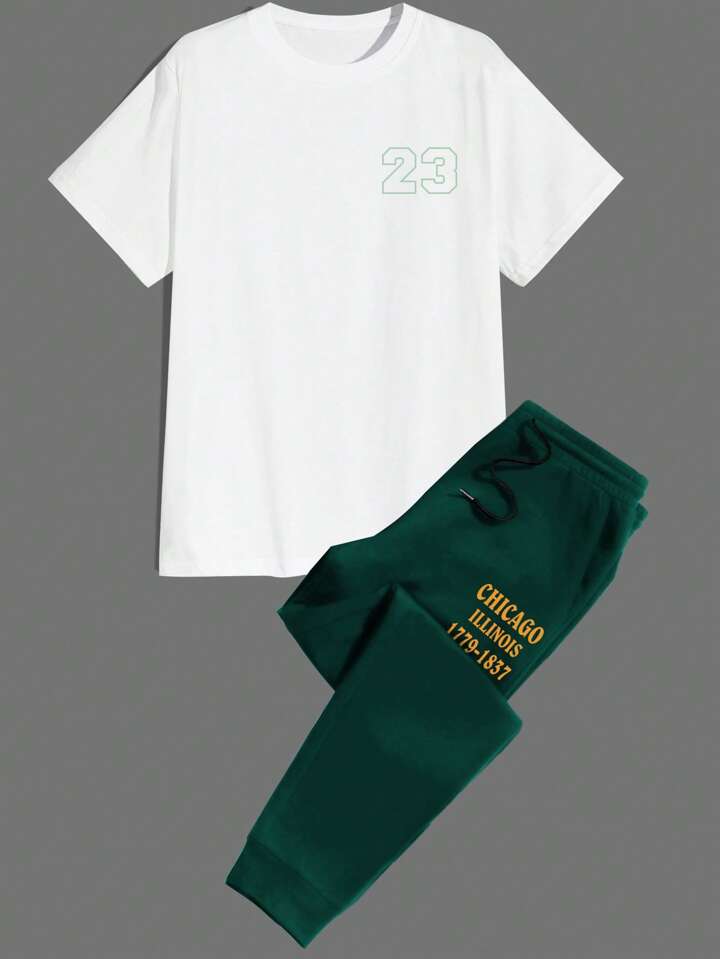 Guys Letter Graphic Tee & Drawstring Waist Sweatpants
