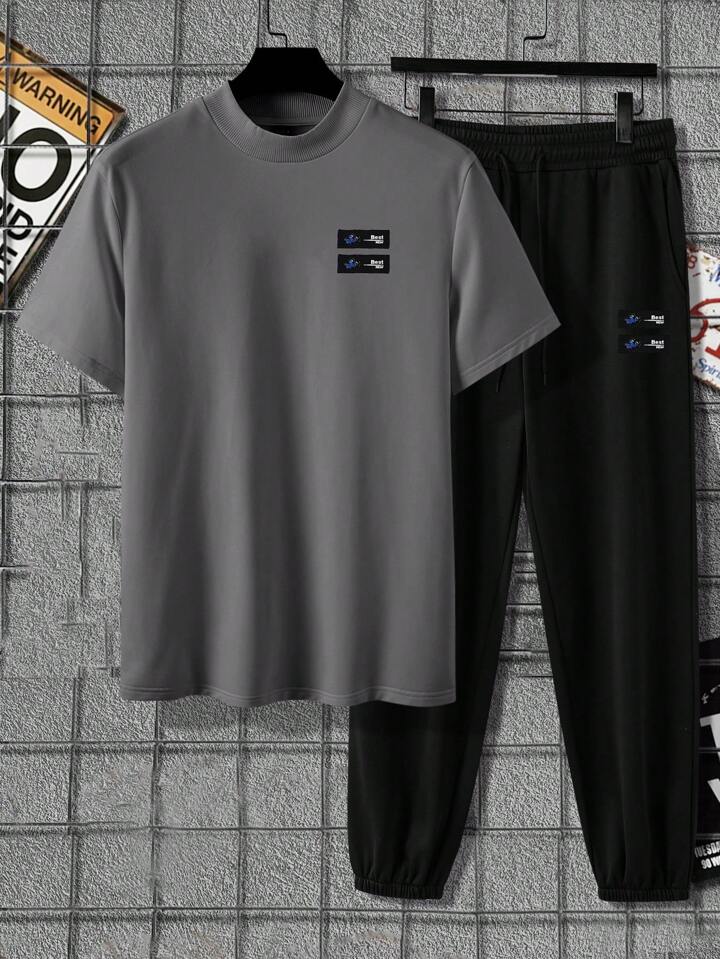 Guys Letter Graphic Tee & Drawstring Waist Sweatpants