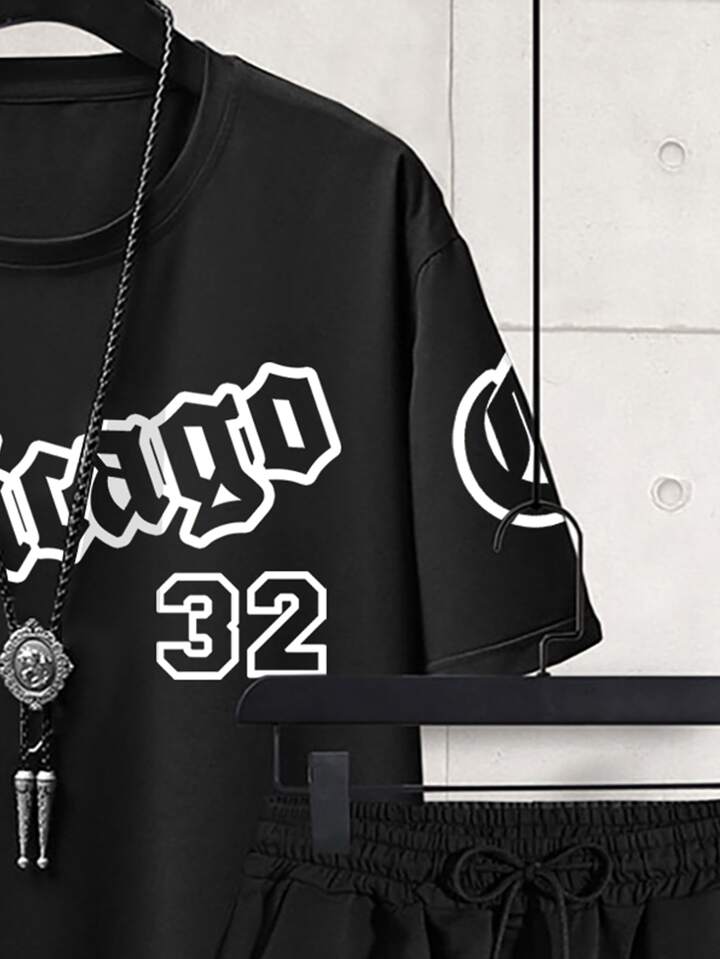 Guys Letter Graphic Tee & Striped Trim Shorts