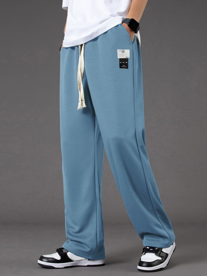 Guys Letter Patched Detail Drawstring Waist Pants
